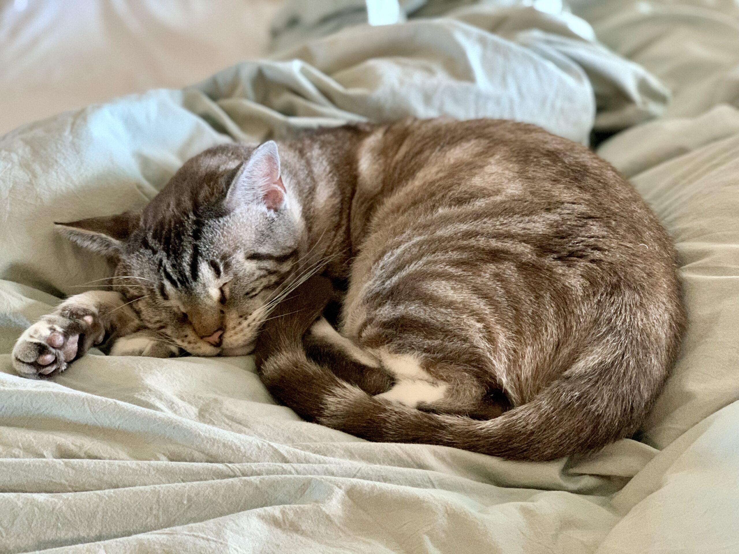 I am a certified Snuggle Bunny and Kitty Admin who truly loves my people. I enjoy attention and affection–on my terms of course!–and even sometimes like tummy rubs. I love being part of the daily routine of my favorite people and hanging out in my cat tree.