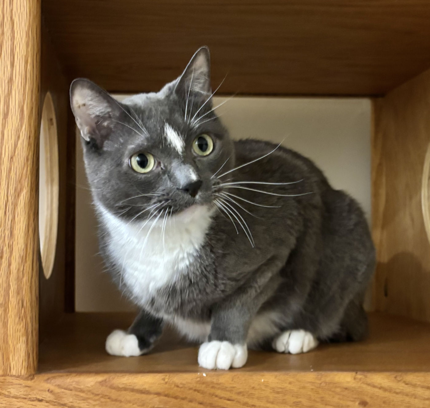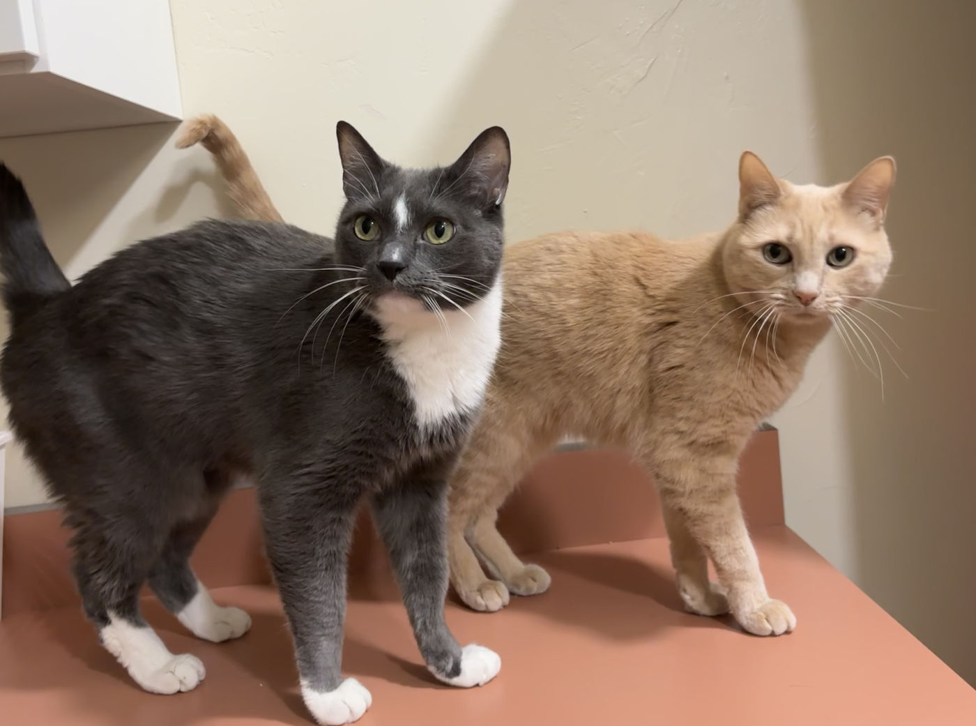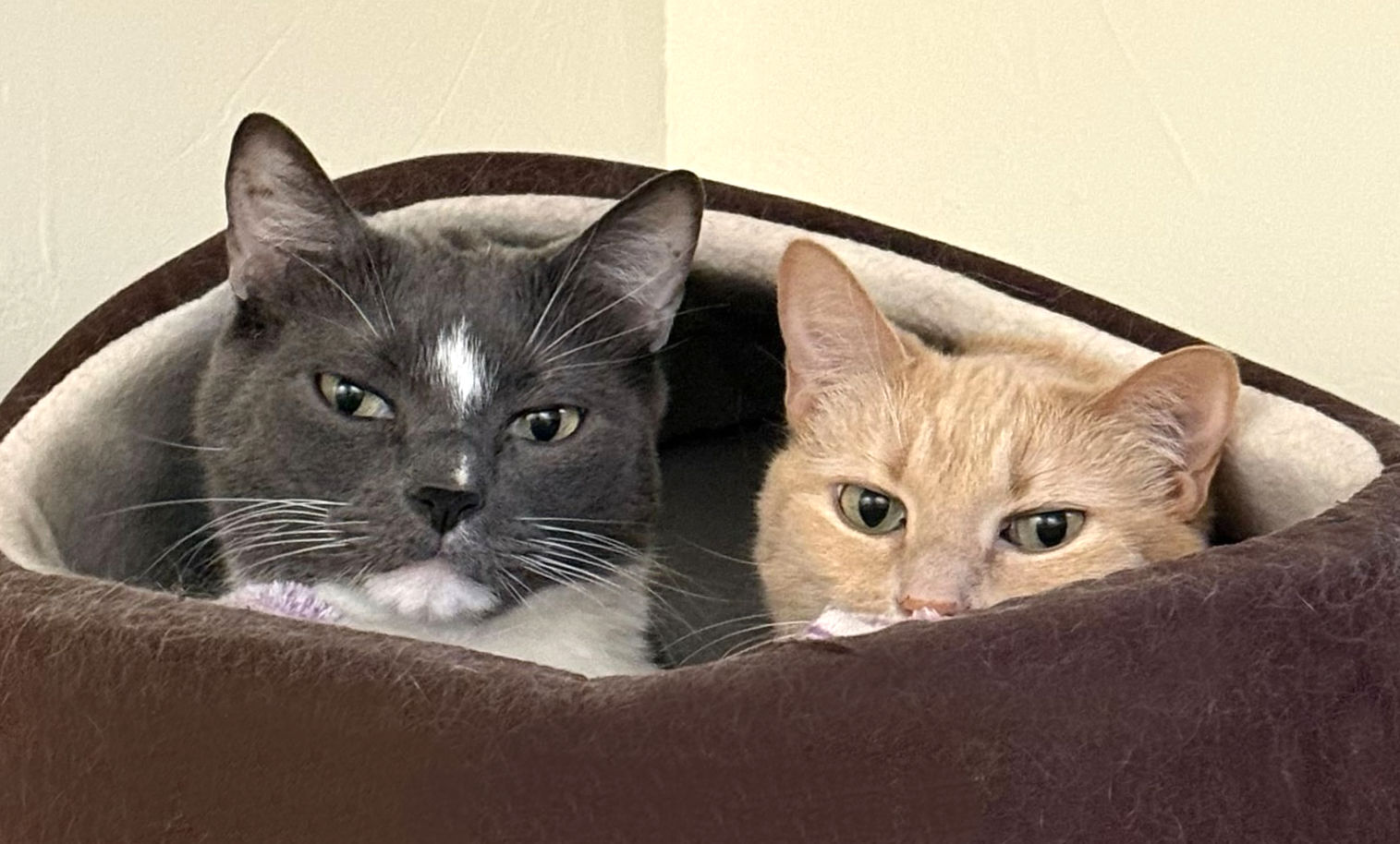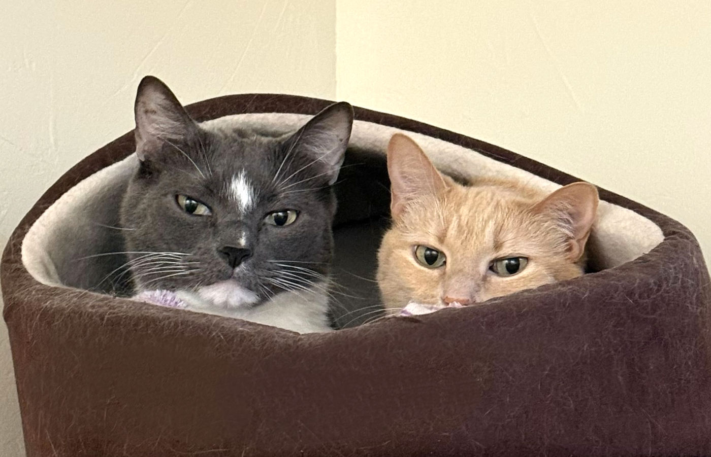 Both kitties are soft, sweet souls who enjoy quiet companionship. Once they feel safe, their favorite thing is settling into a cozy lap for peaceful together time. They are thoughtful cats who take comfort in routine and predictable days, happy to curl up in sunny spots or hang out nearby while you go about your day.