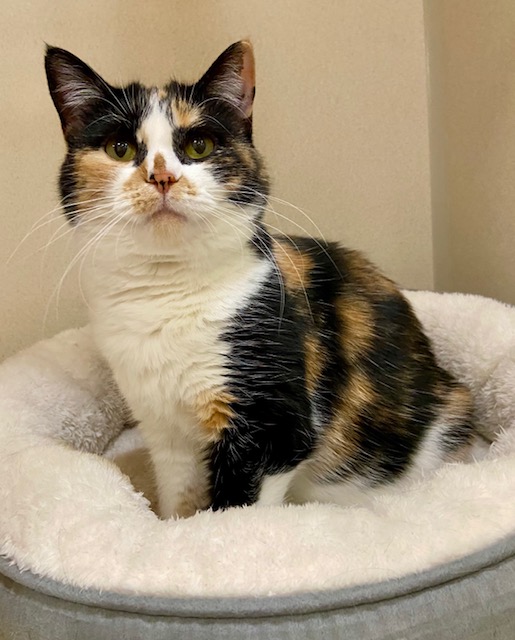 Hello, my name is Bagel, and I am a beautiful calico girl with a heart as warm and comforting as my name. I am 3 years old and proudly wear the titles of Funny Valentine and Snuggle Bunny because I love deeply and cuddle sweetly once I feel safe and adored.
