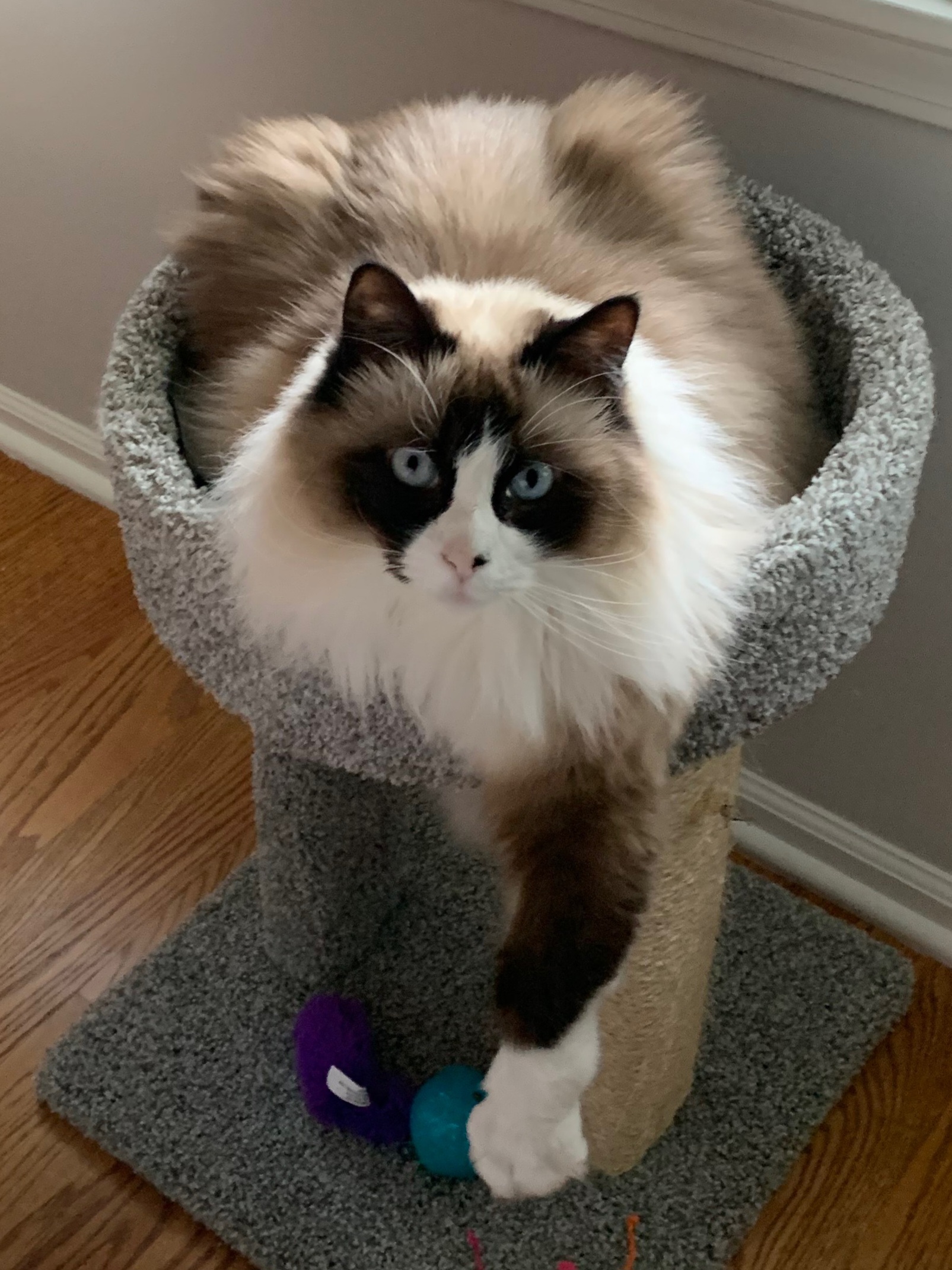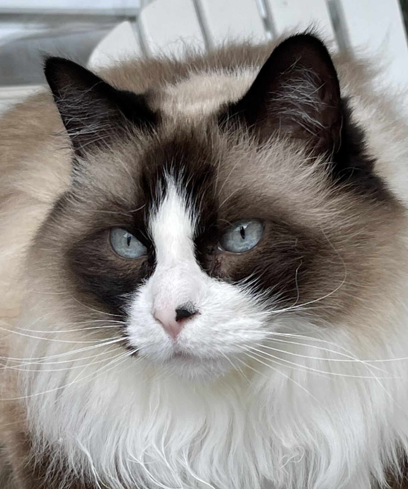 Hi, I’m Ms. Blaze, a truly handsome snowshoe girl with long, luxurious fur and a striking blaze that makes me impossible to forget.