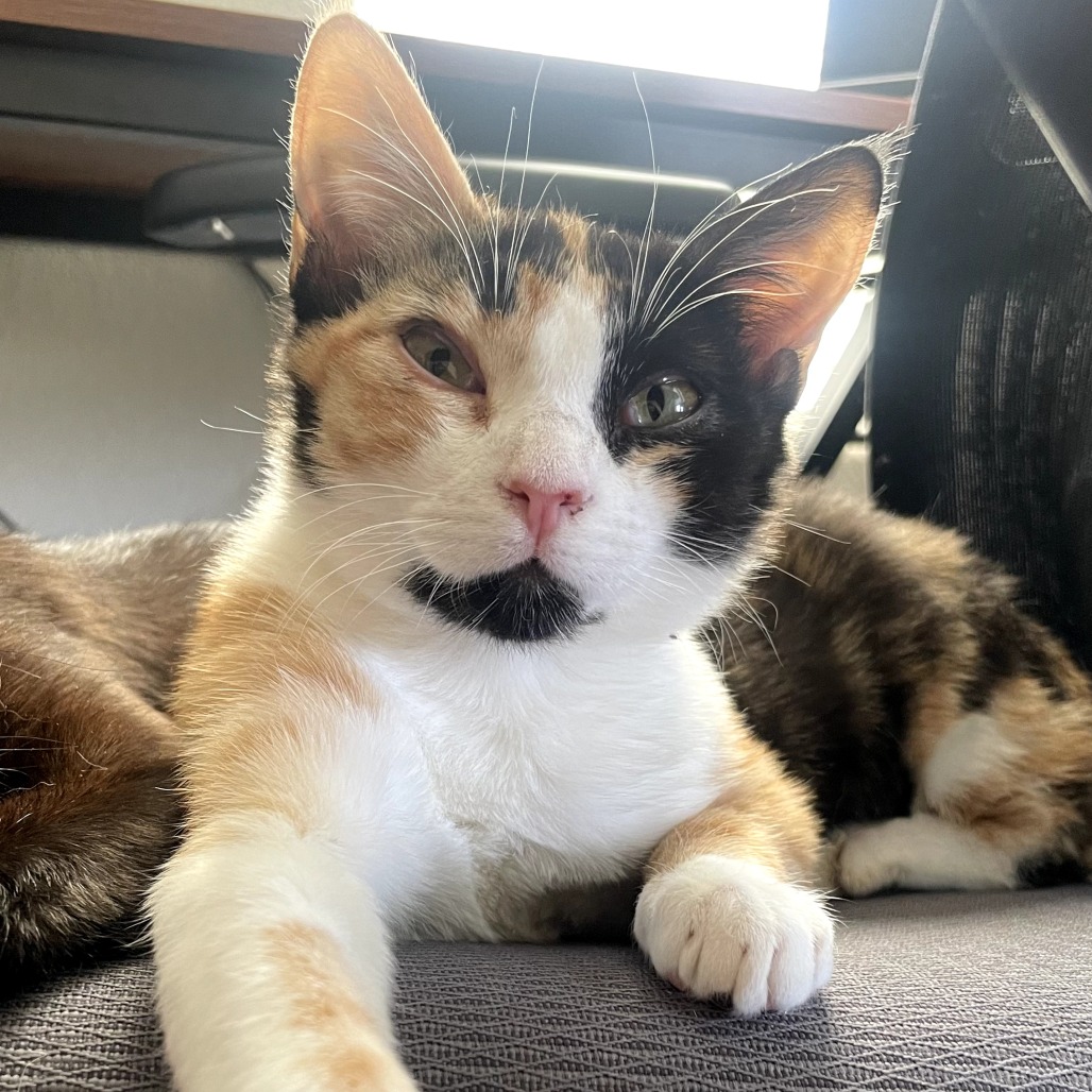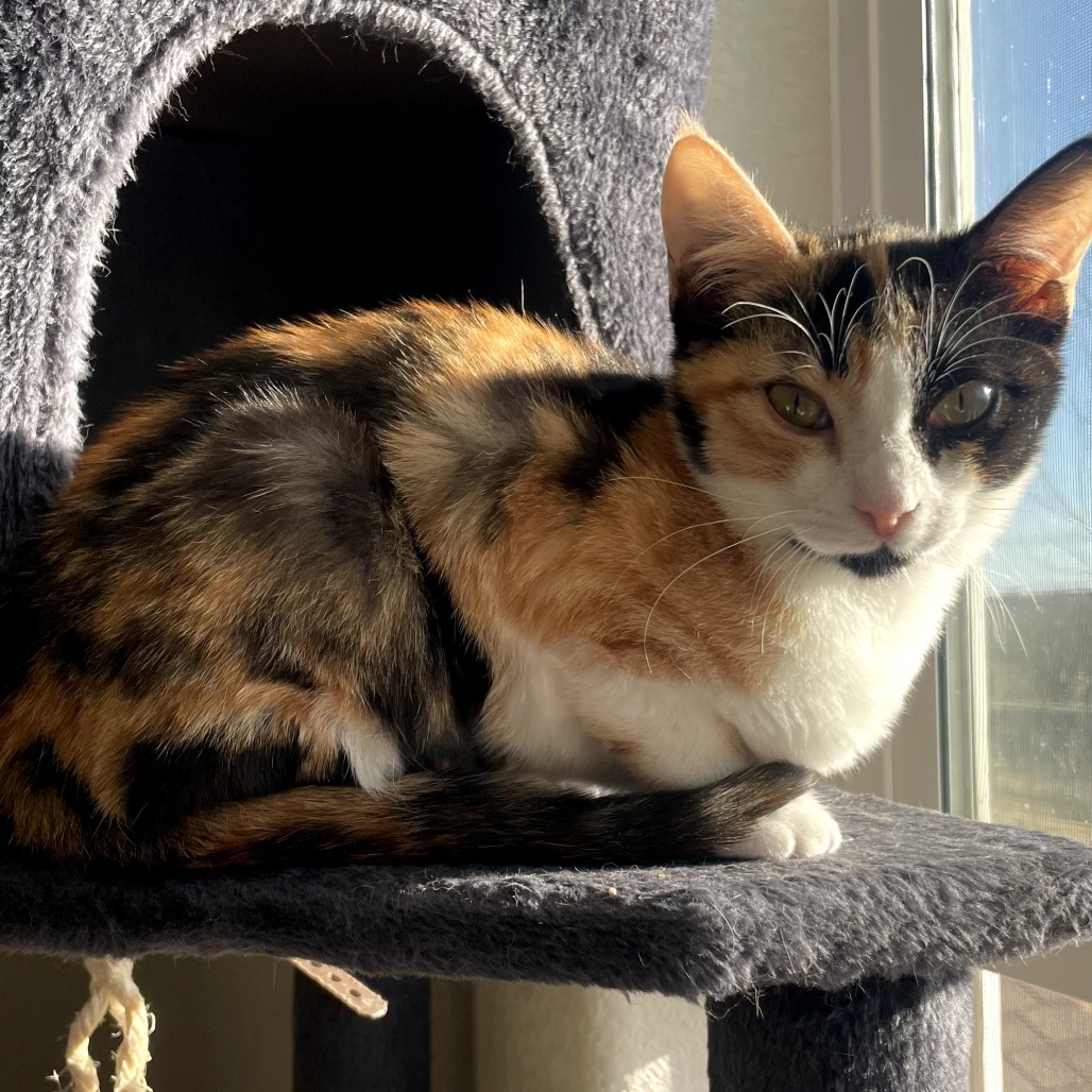 I’m a 4 month old calico girl with a curious heart and a lot to say! If you’re looking for a kitten who will chat with you throughout your day, I’m your girl. I greet you with the cutest little peeps and chitters, and in the morning… well, let’s just say I make sure you never forget breakfast time.
