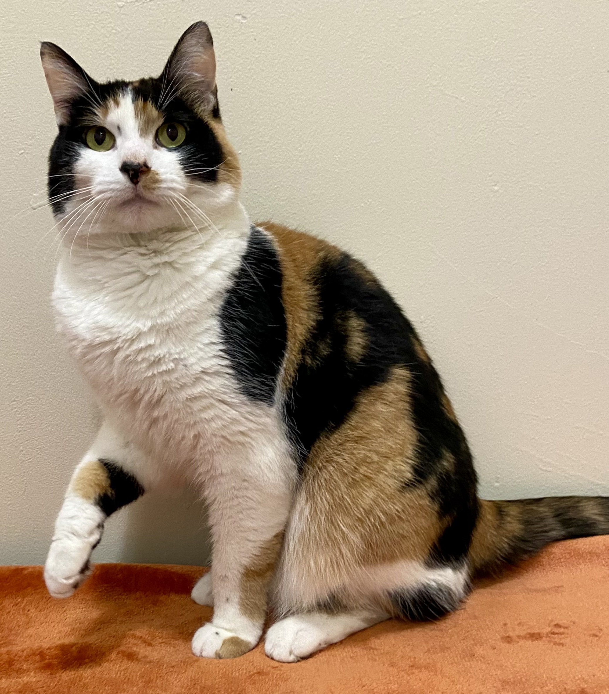 I’m a sweet and loving short hair calico girl with a gentle heart. I was rescued from outside, and before coming into rescue I did an amazing job raising my kittens and taking such good care of them until they were ready to be adopted. Now that my babies are grown, it’s finally my turn to find a safe, loving home of my own.