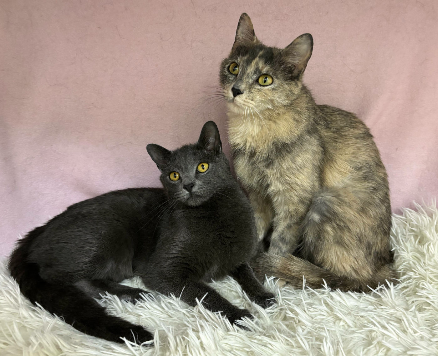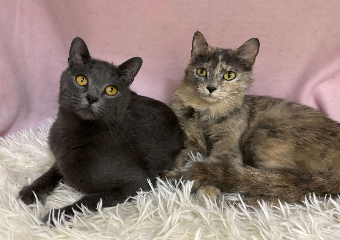 They can be adopted for $200 which includes their spays, vaccinations, microchips, a food and litter starter kit each, and a free well-kitty checkup each to help you get started.