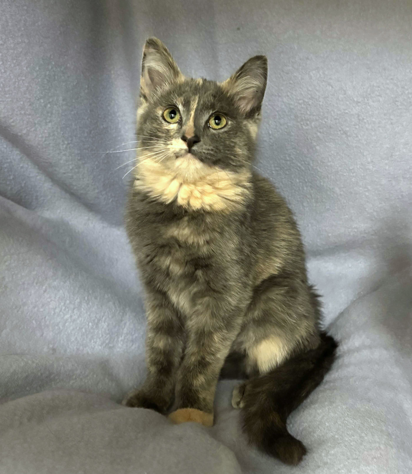 Hi there, I’m Churro! Just like my name, I’m sweet, swirly, and totally irresistible! I’m a 4-month-old dilute tortie with the softest colors and a personality that’s just as melt-in-your-mouth sweet.