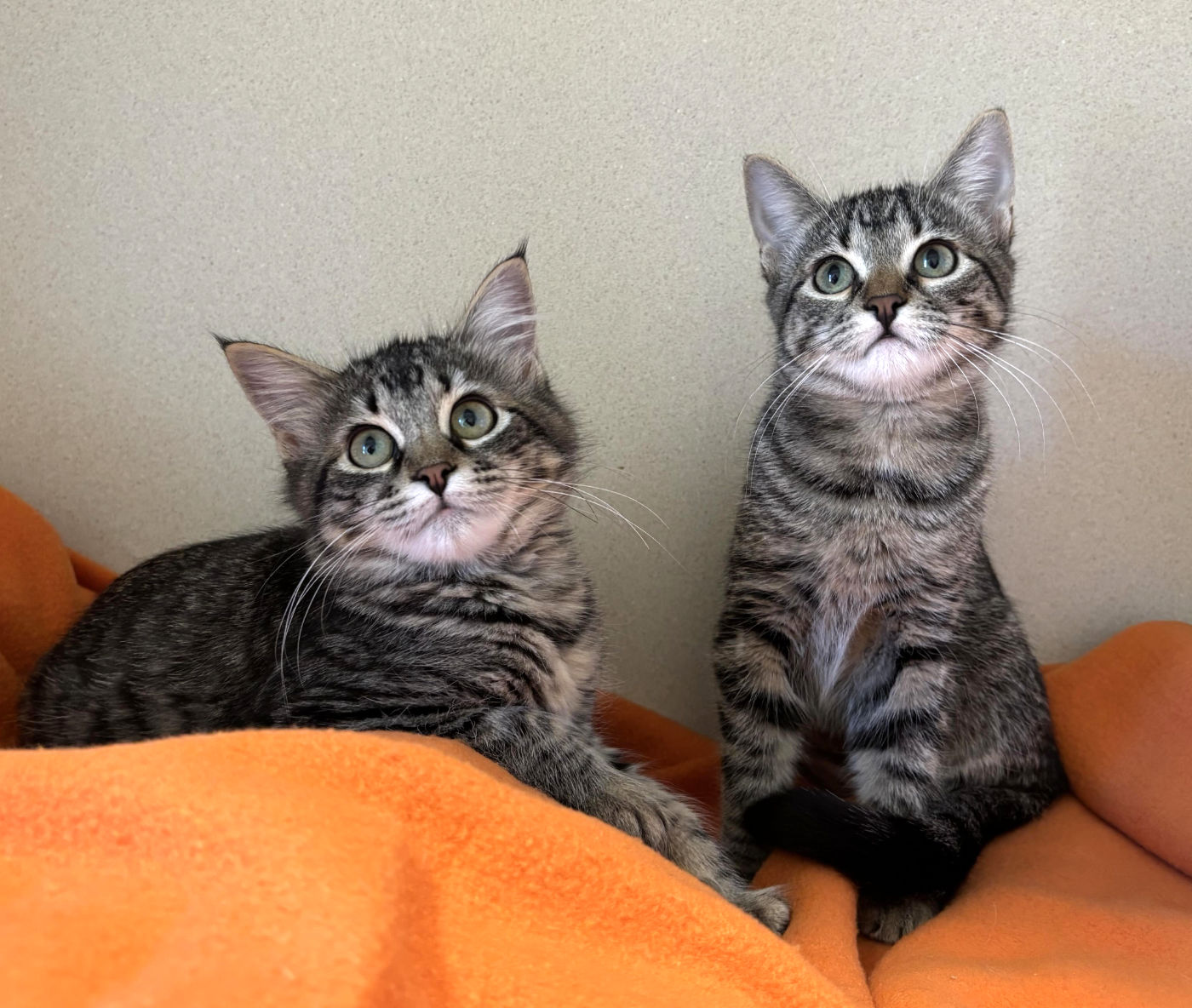 Meet Cider and Spice — the sweetest little sisters to warm your heart and home this season! These 4-month-old tabby girls are as cozy as their names suggest, full of soft purrs and gentle affection once they get to know you.