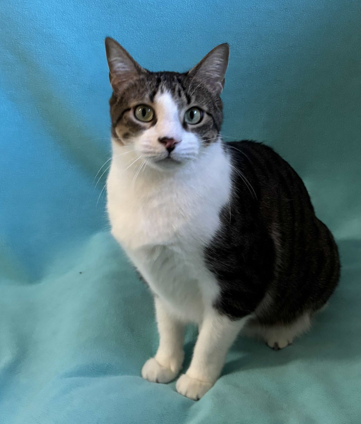 I may do OK with other nice cats as long as they’re mellow like me, as I tend to hang back whenever there are party animals around. Except when it comes to playtime…then I’m ready to claim my toys and territory! I’ll do best in a home with no dogs and older children who are cat-savvy.
