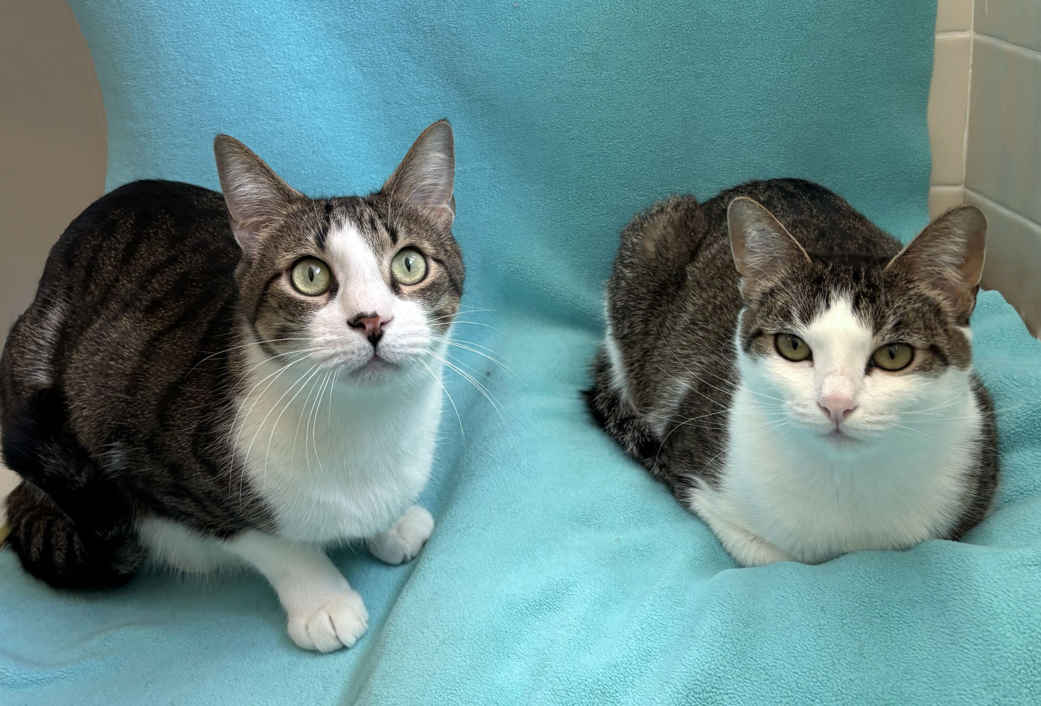 They can be adopted for $180 which includes their neuter & spay, vaccinations, microchips, a food and litter starter kit each, and a free well-kitty checkup each to help you get started.