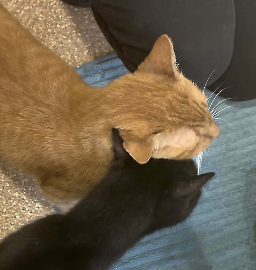 In my foster home, I’ve been curious and friendly with the resident cats and dogs and haven’t hissed once, even when we first met. I’ve been a great friend to Peanut, who also came with me to find a new home.