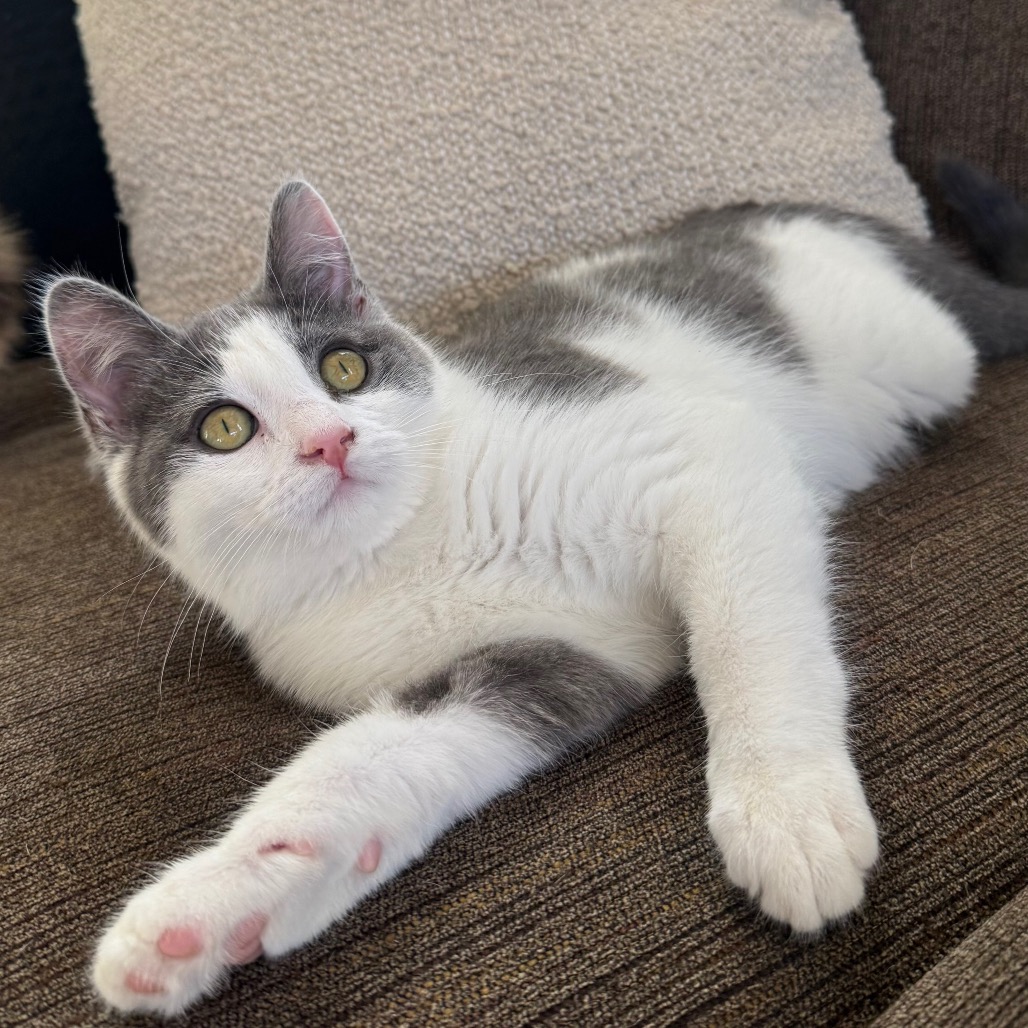 I may have started life with a challenge, but you might never notice it once you see me zooming around and playing. I came from an outdoor colony where I was having a hard time getting enough to eat, partly because I am missing half of my left rear leg. Since coming into care, though, I have shown everyone just how resilient kittens can be. I have adapted beautifully to indoor life and take everything in stride.