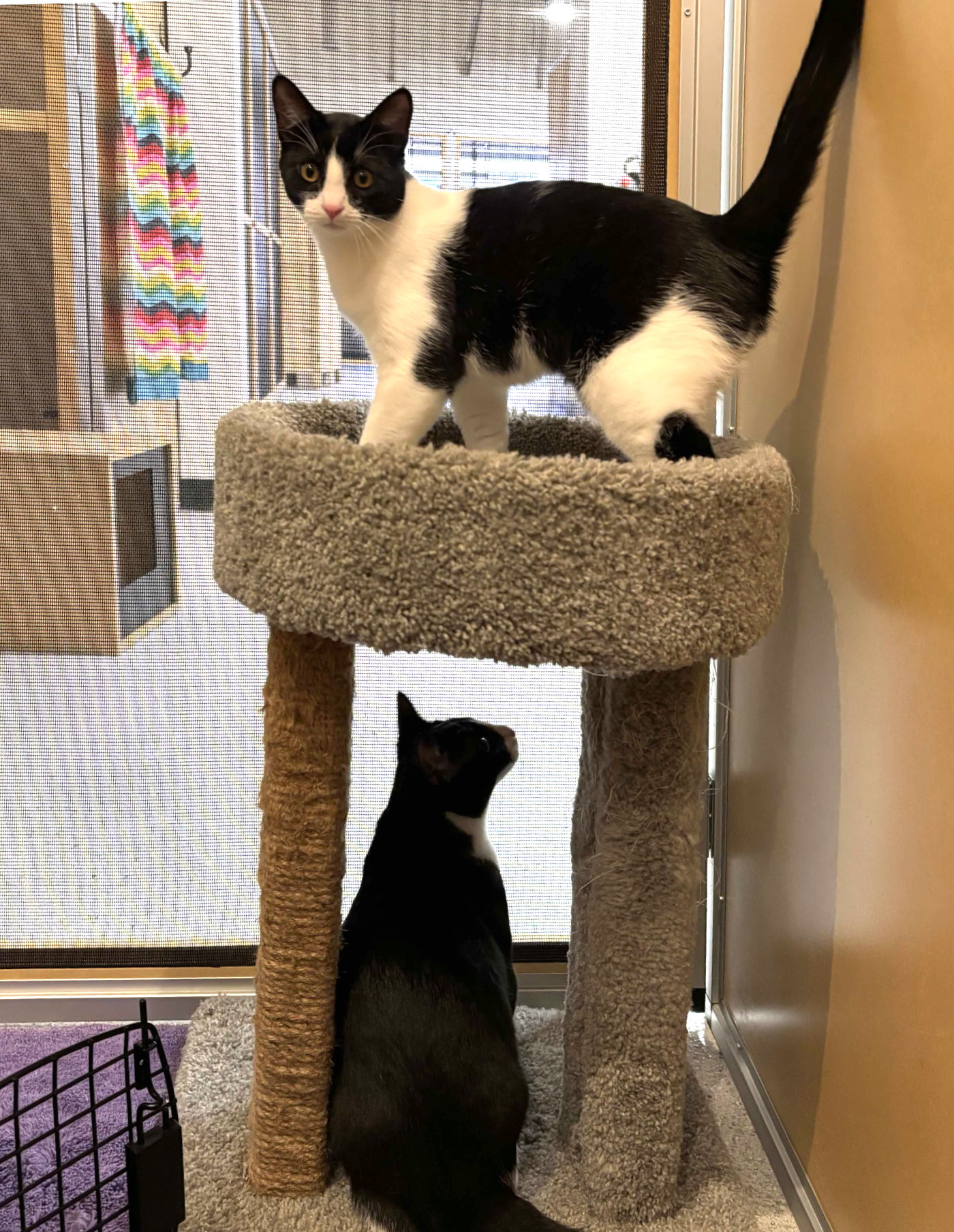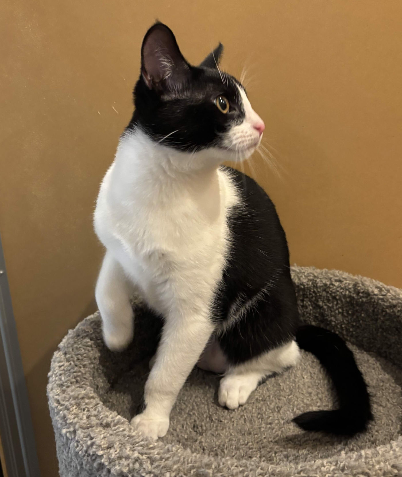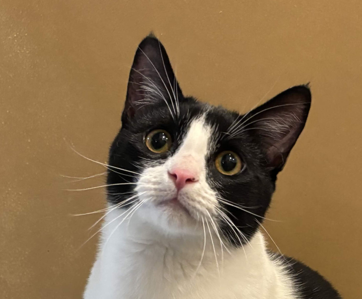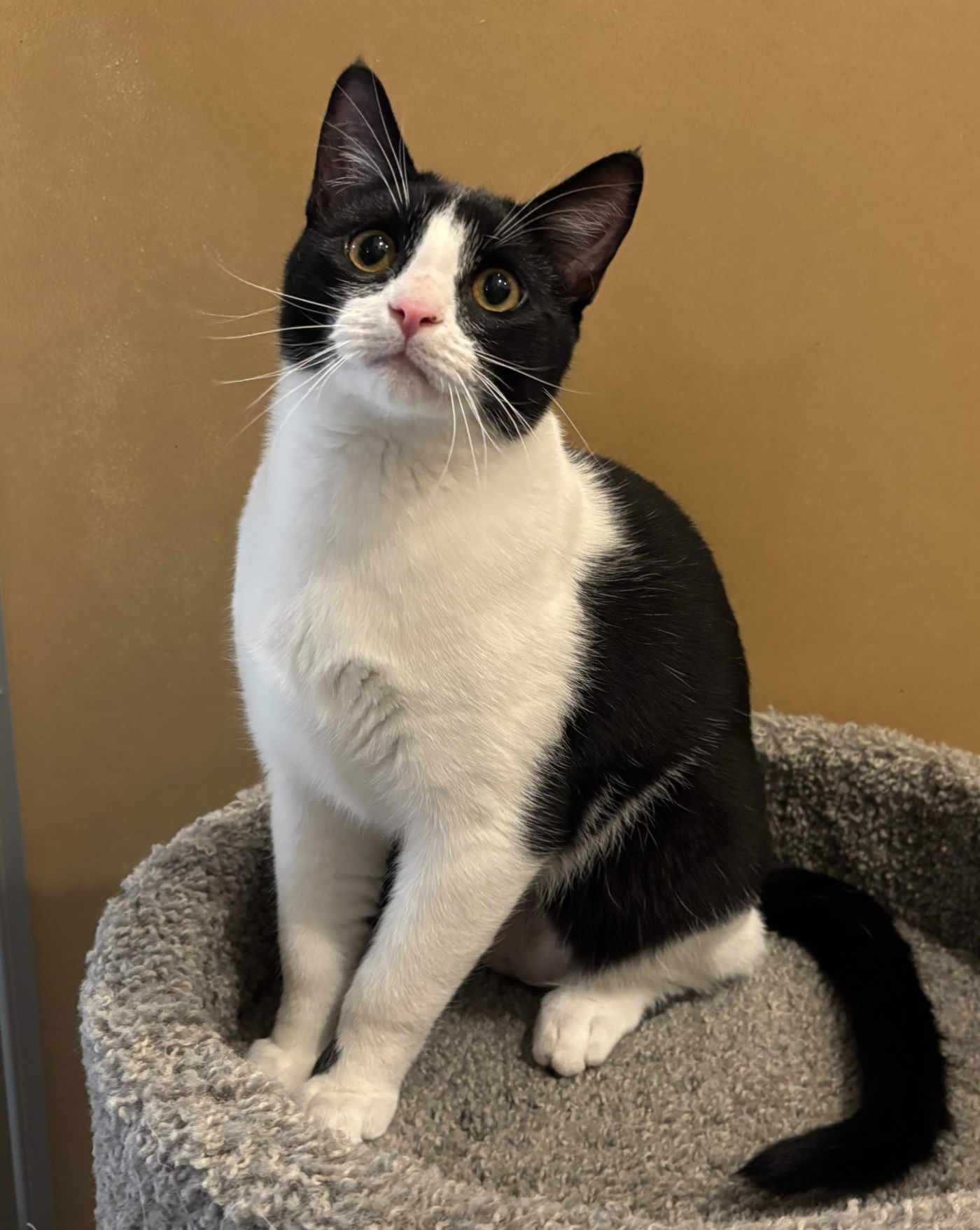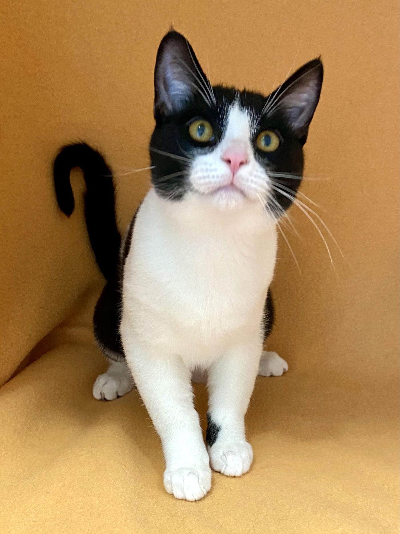 Hi there, I’m Dwight! I’m an adorable little tuxedo kitten who’s ready to make your life one big party! I came here with my sisters Rory and Champion after we were rescued as wee orphans.