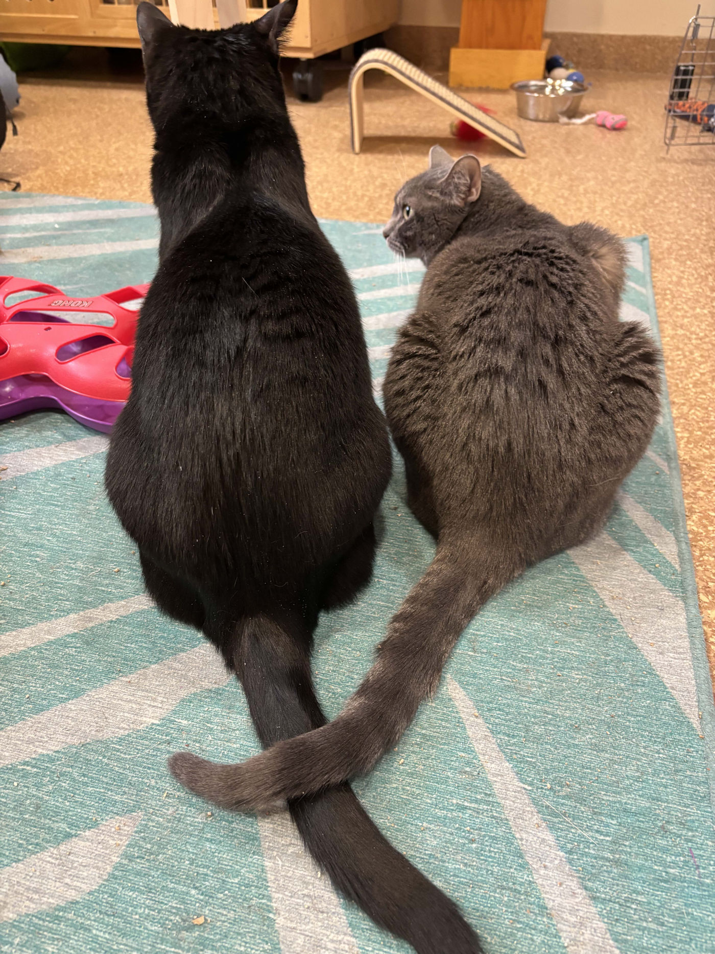 Dove & Elfie also come with their tall cat tree, TLC support to help them continue to blossom, a top-loading carrier each, a pet cam to help you monitor them for their extra Safe Room time, their toys and beds, treats as well as a home installation with their friends on the behavior team so they get the best possible start with their new family.