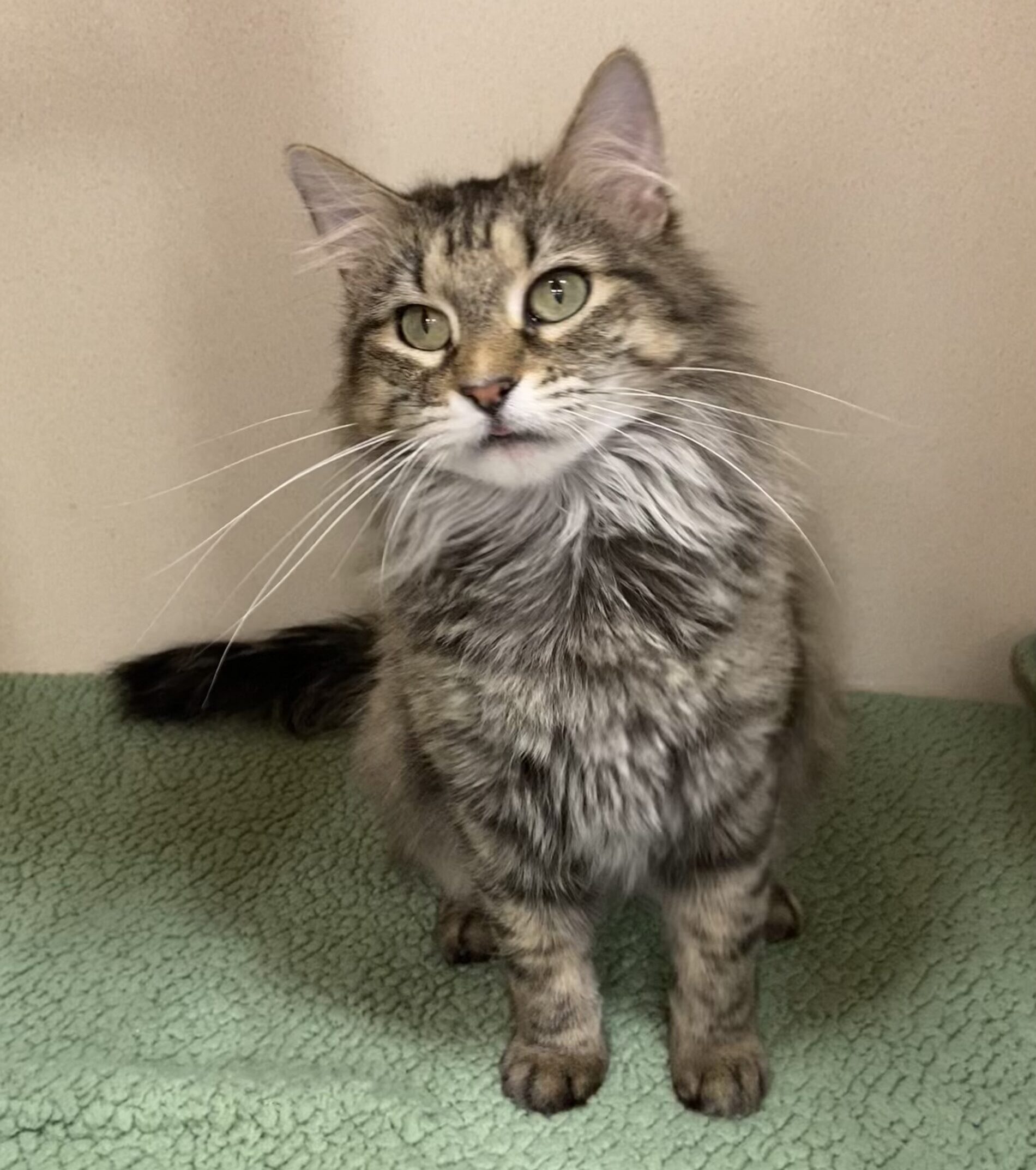 I was surrendered from a home with too many cats. I used to live with a large group and did fine overall, but I mostly kept close to my twin sister, who has sadly passed away. Since losing her, I have been on my own and can be picky about other cats. I may hiss at foster cats and can be a bit feisty, so while I might coexist with the right feline friend after a slow and thoughtful introduction, I may also be happiest as your one and only.