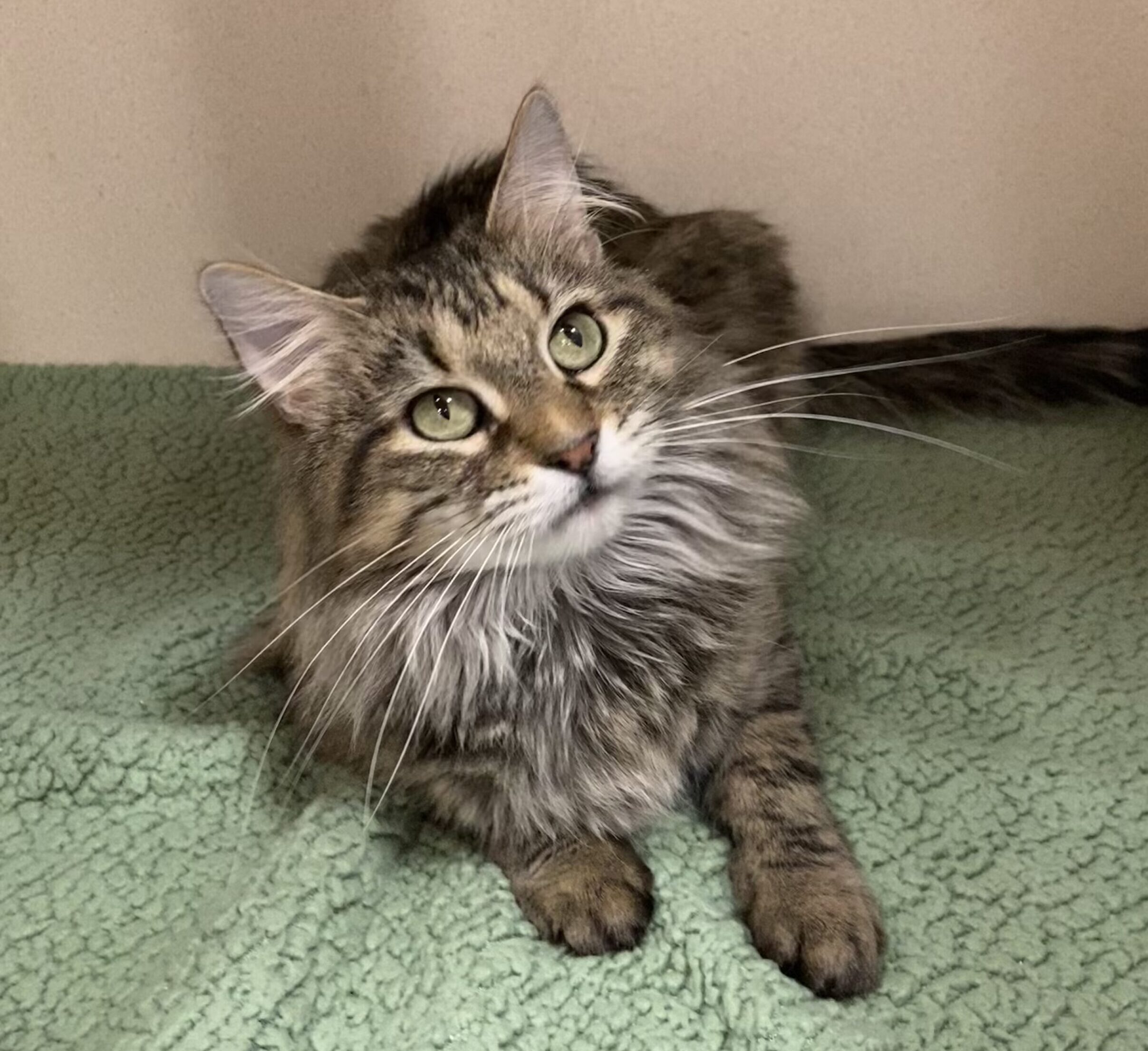 Hi, I’m Feather, a stunningly beautiful 3 year old girl with a fluffy, elegant look that makes people wonder if I have a little Maine Coon ancestry. While I may look like an adventure cat, I am really more of a homebody who prefers comfort, consistency, and being doted on by my people.