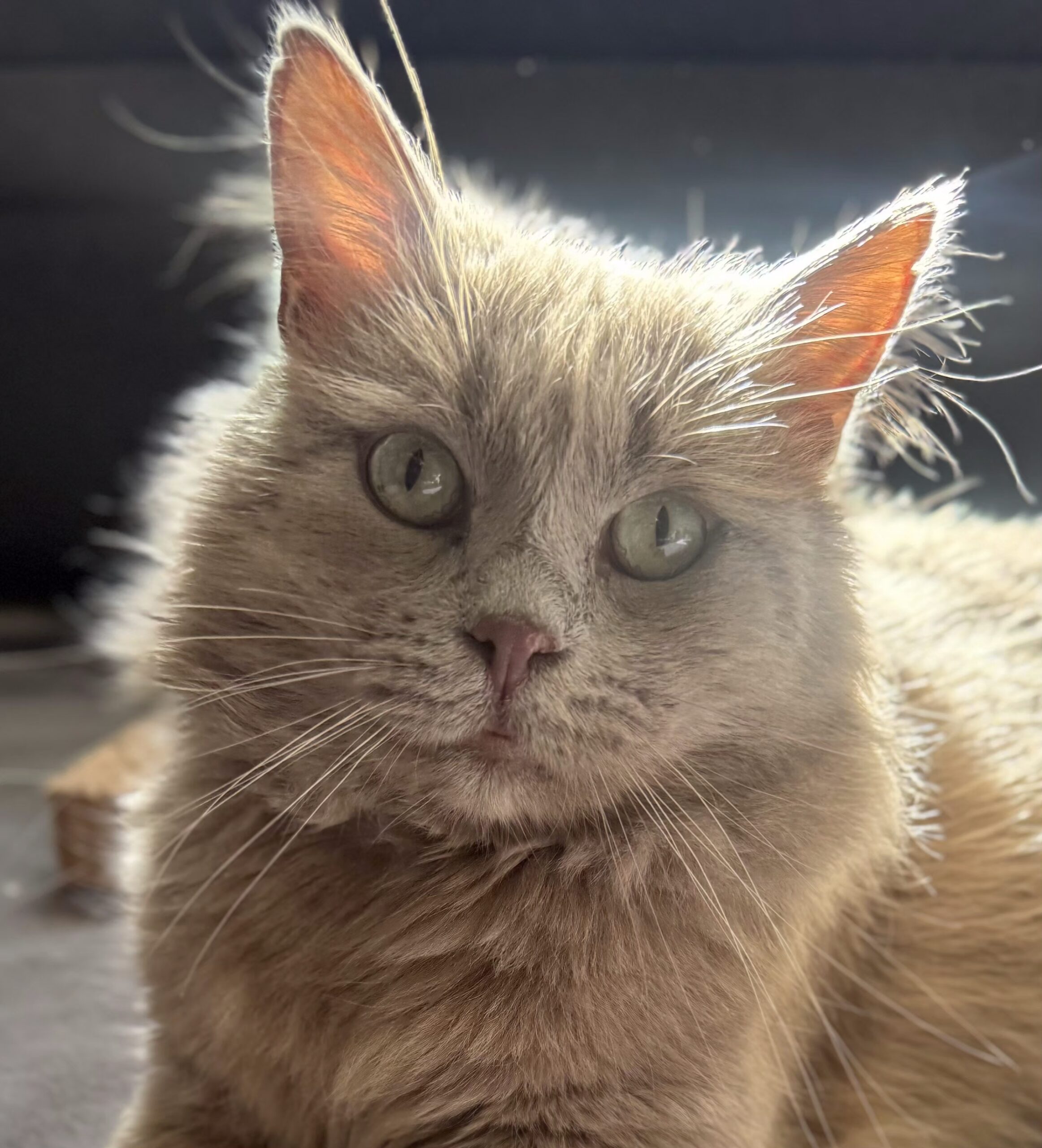 Hi, I’m Goldie. I am a 7-year-old gentleman with a coat that shimmers like sunshine and a heart to match. People say I look like a British Shorthair lilac fawn, just without the fancy papers. What truly makes me special is my loving spirit and the way I keep choosing kindness, even after a tough start in life.