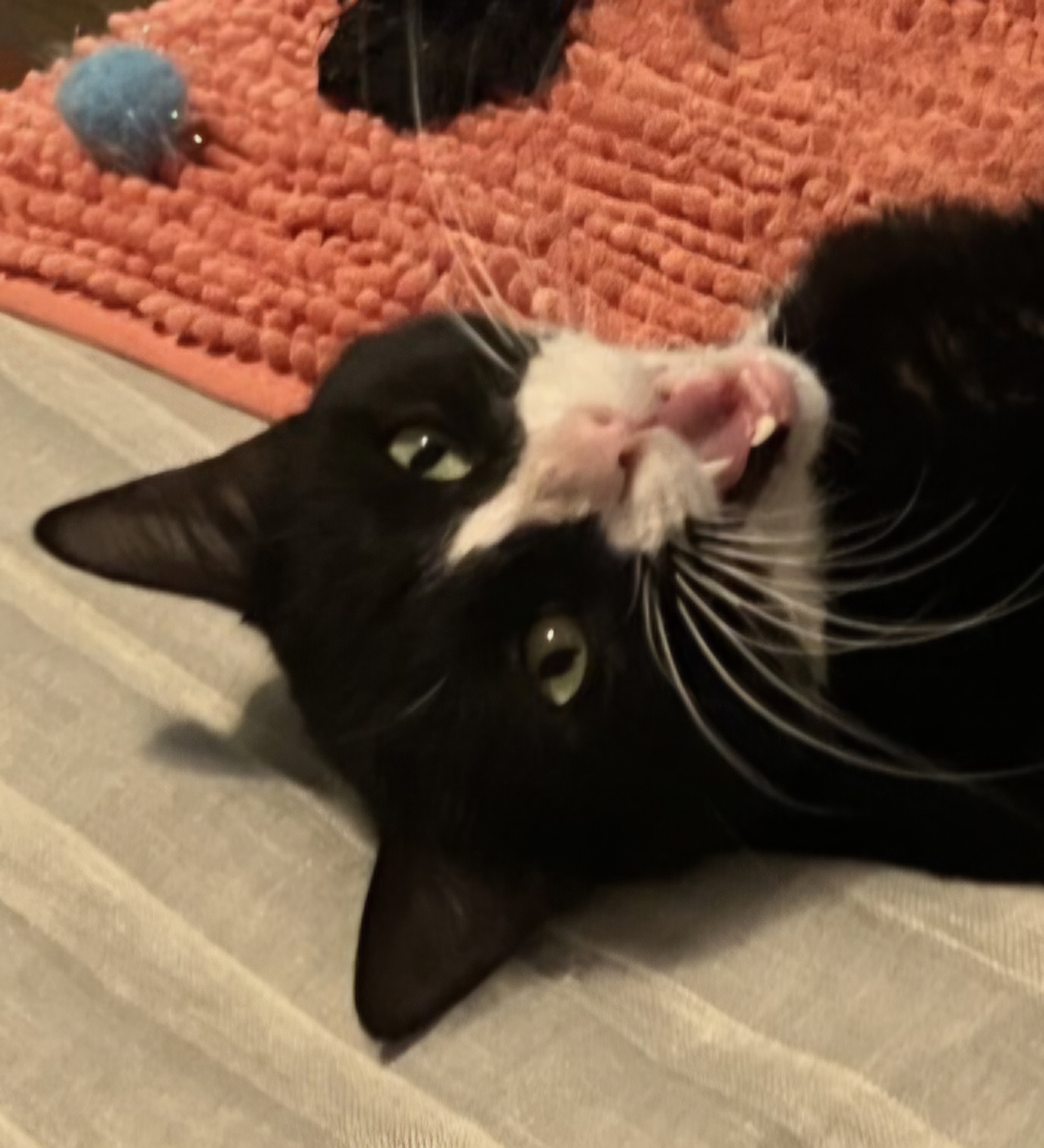 I am a social boy who loves people and rates myself pretty high in the affection department once I get to know you. I enjoy love, scratches, and meaningful connection, and when I trust you, I am happy to curl up in your lap and soak in the closeness. At night, I take my sleeping arrangements seriously and prefer to be near my person, my favorite spot on the bed is with my chosen purrson and I do prefer to have that person all to myself!