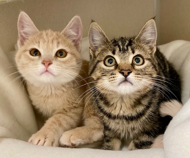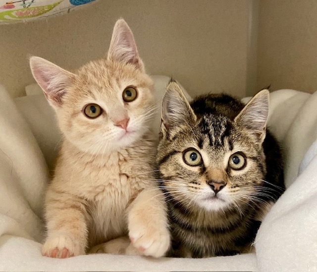 They can be adopted for $300 which includes their spay and neuter, vaccinations, microchips, a food and litter starter kit each, and a free well-kitty checkup each to help you get started.