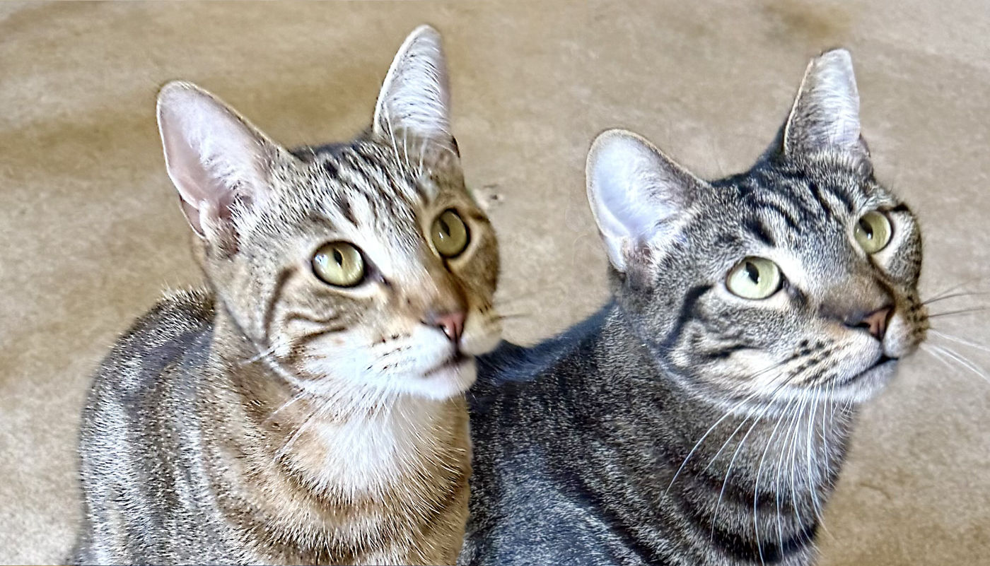 Hi y’all, we are the Tabby Twins! We are a couple of energetic, fun-loving boys who came to Happy Cats to find our forever homes!