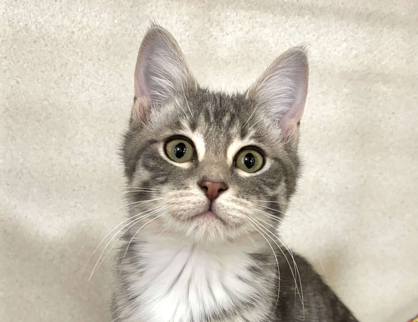 At just 3 months old, I am a silver tabby girl with impeccable manners and a soft, regal presence. My foster says I carry myself like a little duchess, always polite with guests and curious about the world around me.