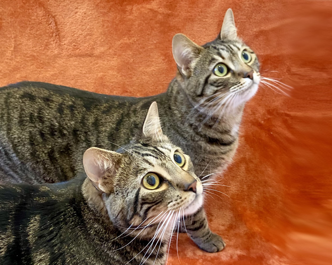Lilly and Stitch are a beautiful, bonded pair of tabby Funny Valentines who are ready to fill their new home with love. Lilly is the striking 3 years & 9 months old mackerel tabby, while her best friend (and son) Stitch is a 3-year-old classic tabby boy with those gorgeous swirl markings.