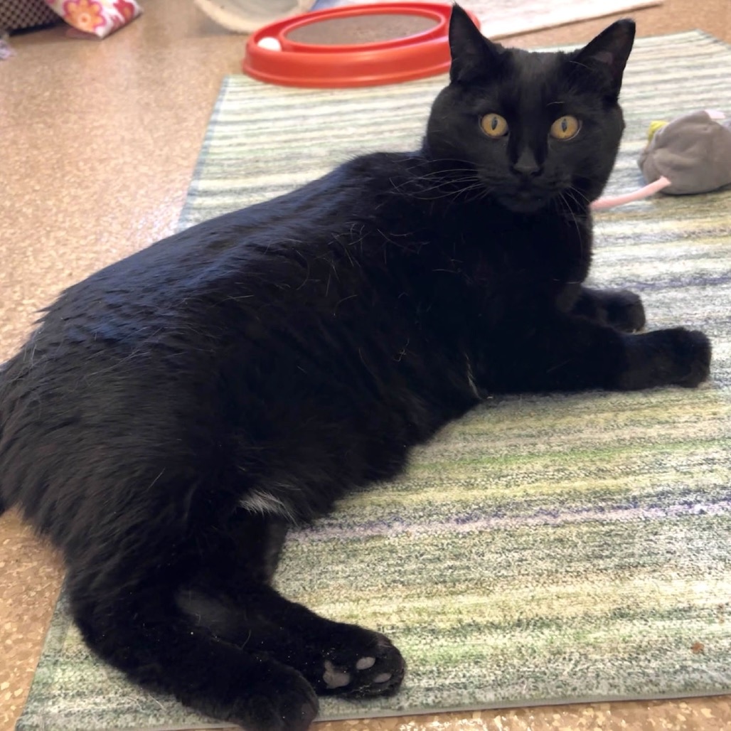 I’ve really blossomed with the love of Happy Cats volunteers and love coming out for pets with my favorite people. Once I’m home and settled, I’ll be happy to snuggle sidecar-style like I did with my foster mom, keeping you warm on cold winter nights.
