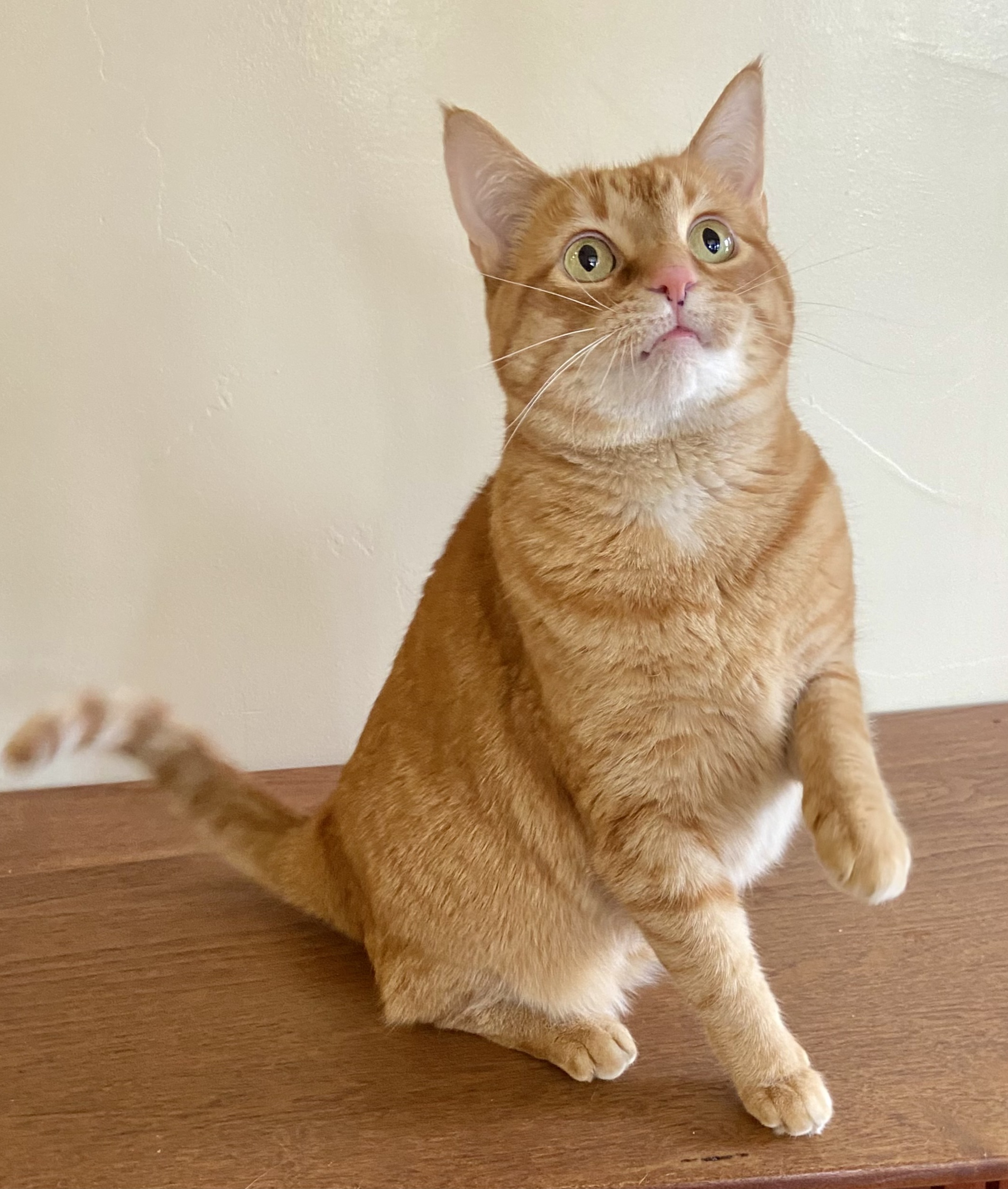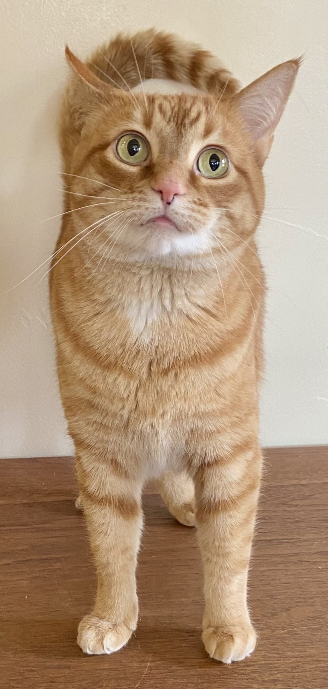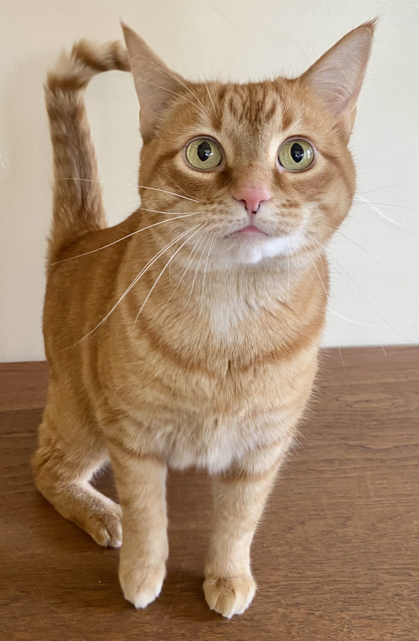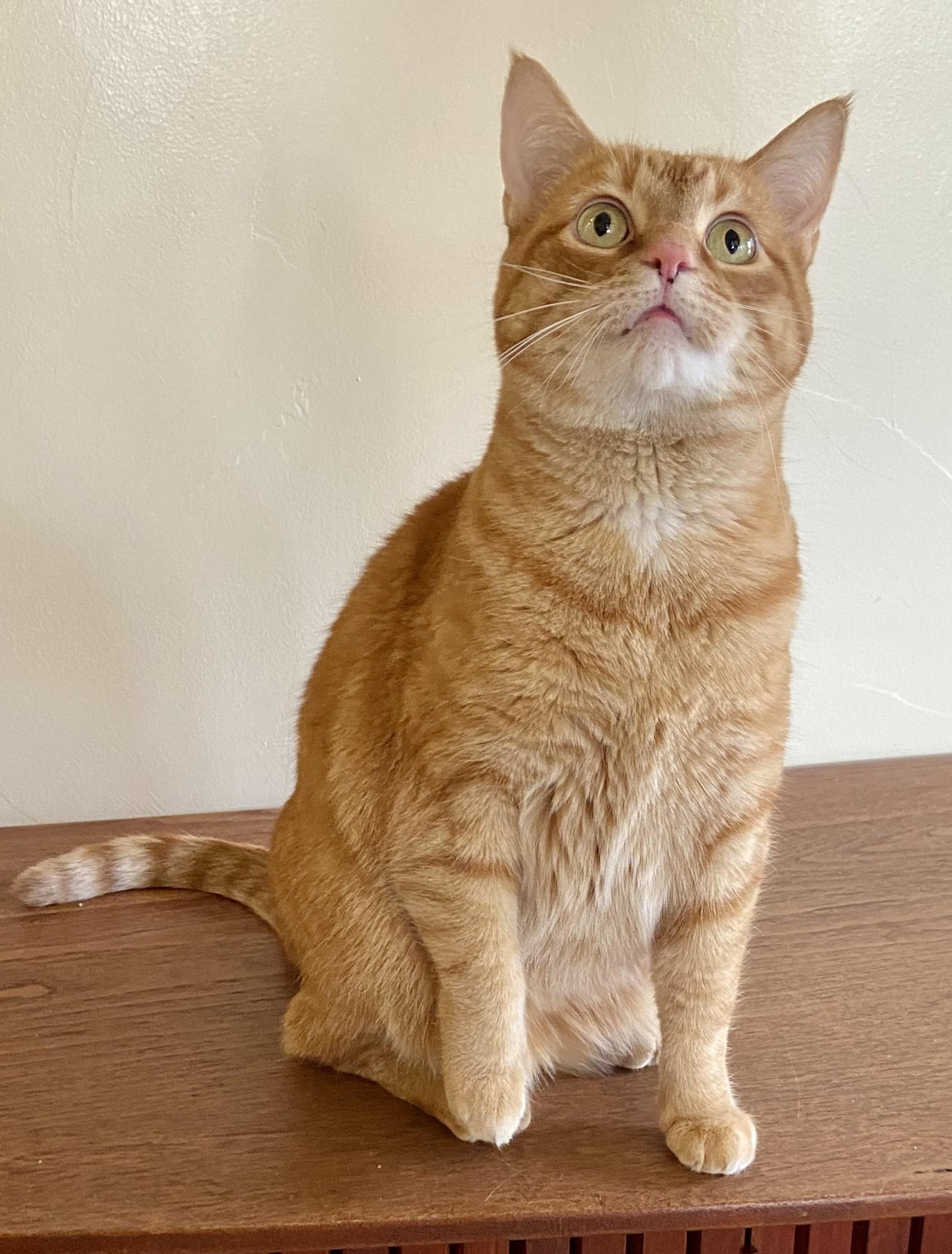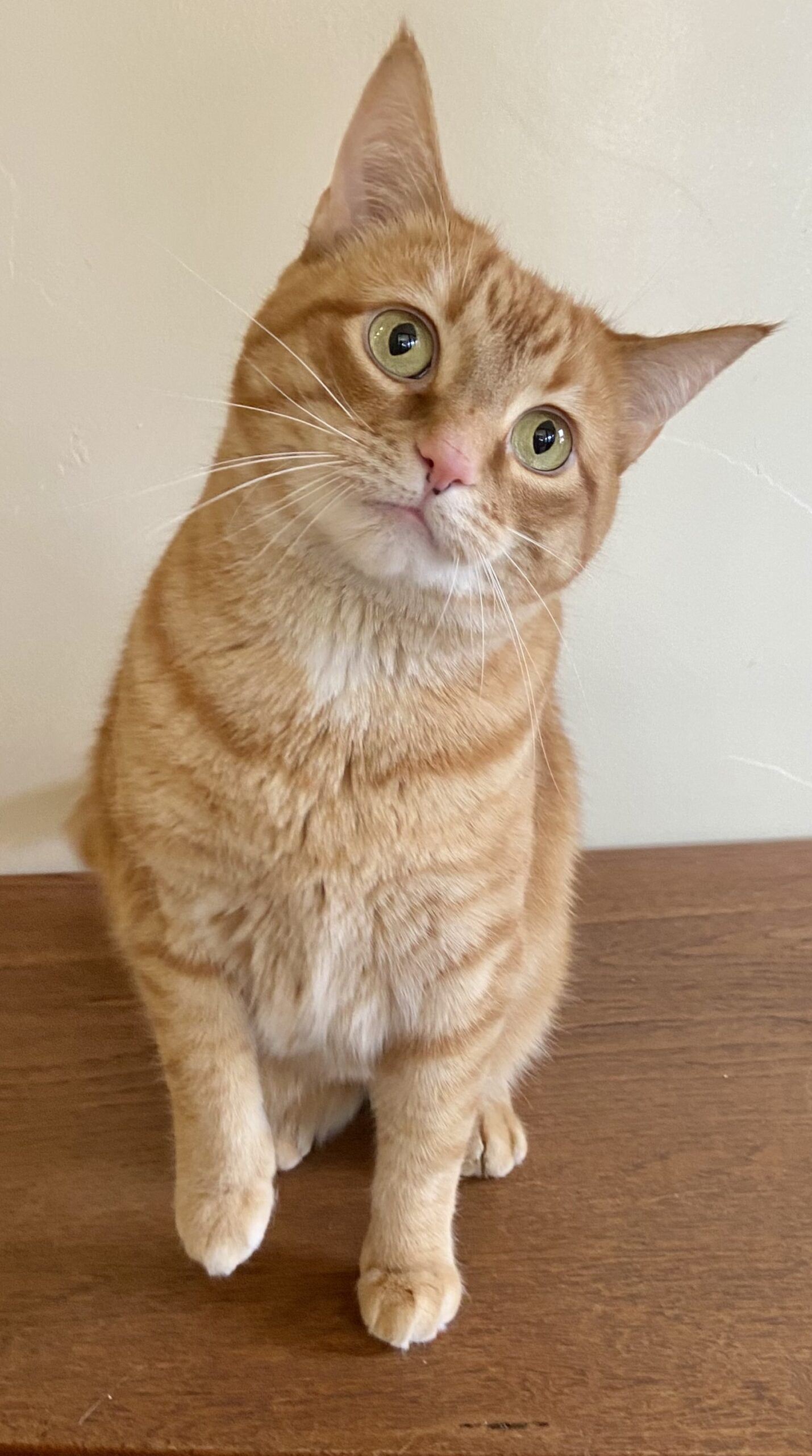 I’m a gorgeous orange tabby girl, which is a little rare and makes me feel pretty special. You could say my personality matches my sunset-colored coat, warm, glowing, and just a little bit dazzling once you give it time to shine.