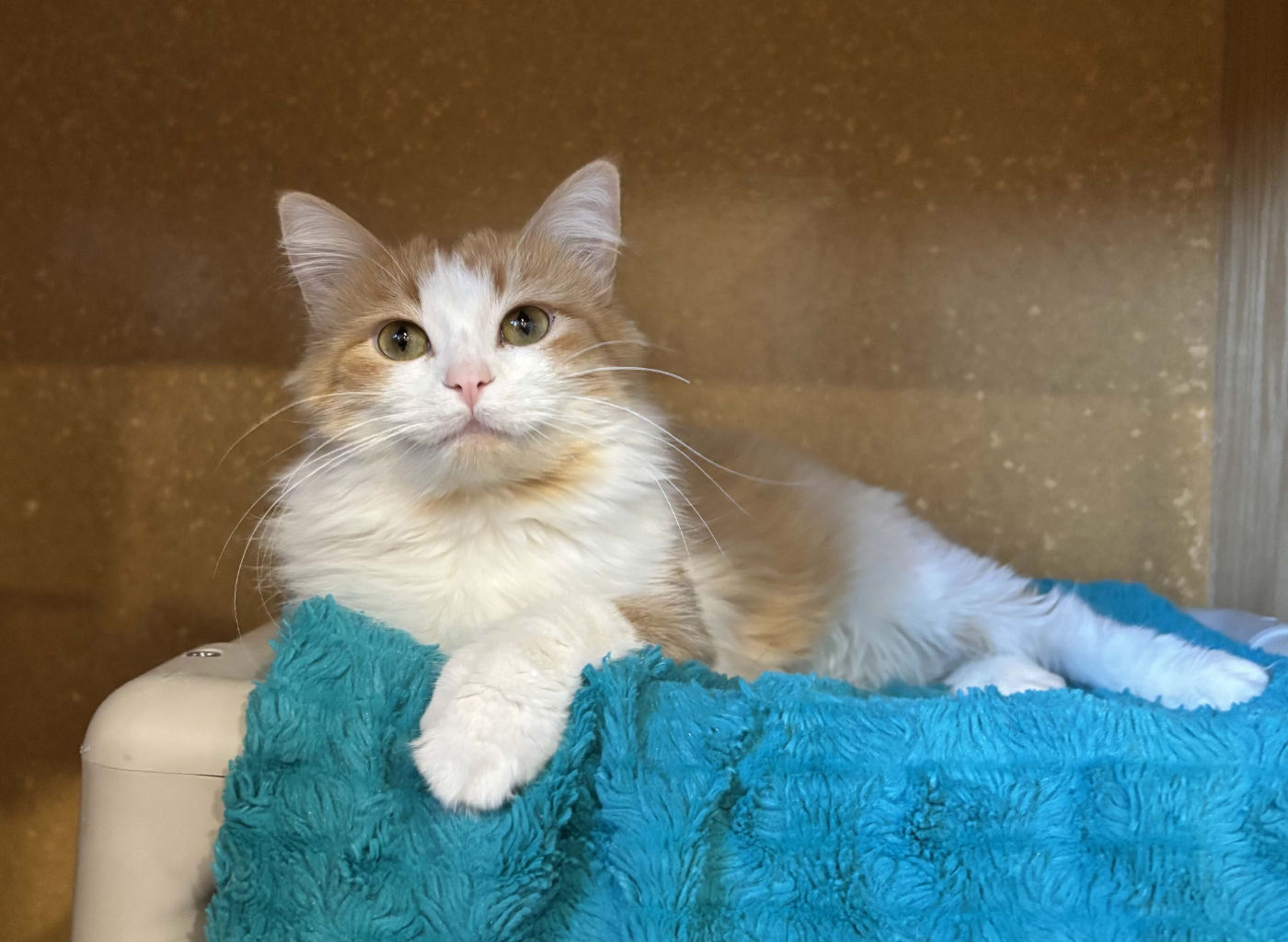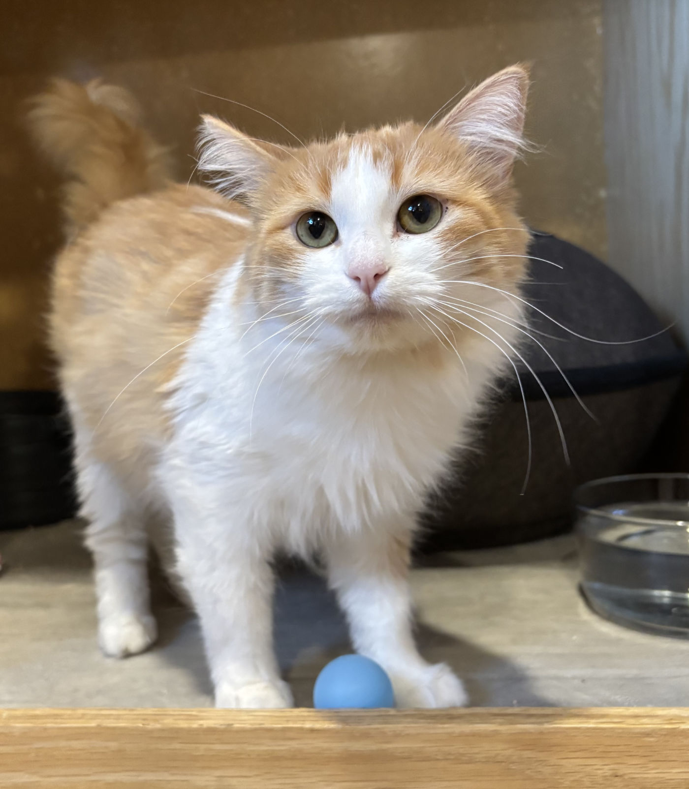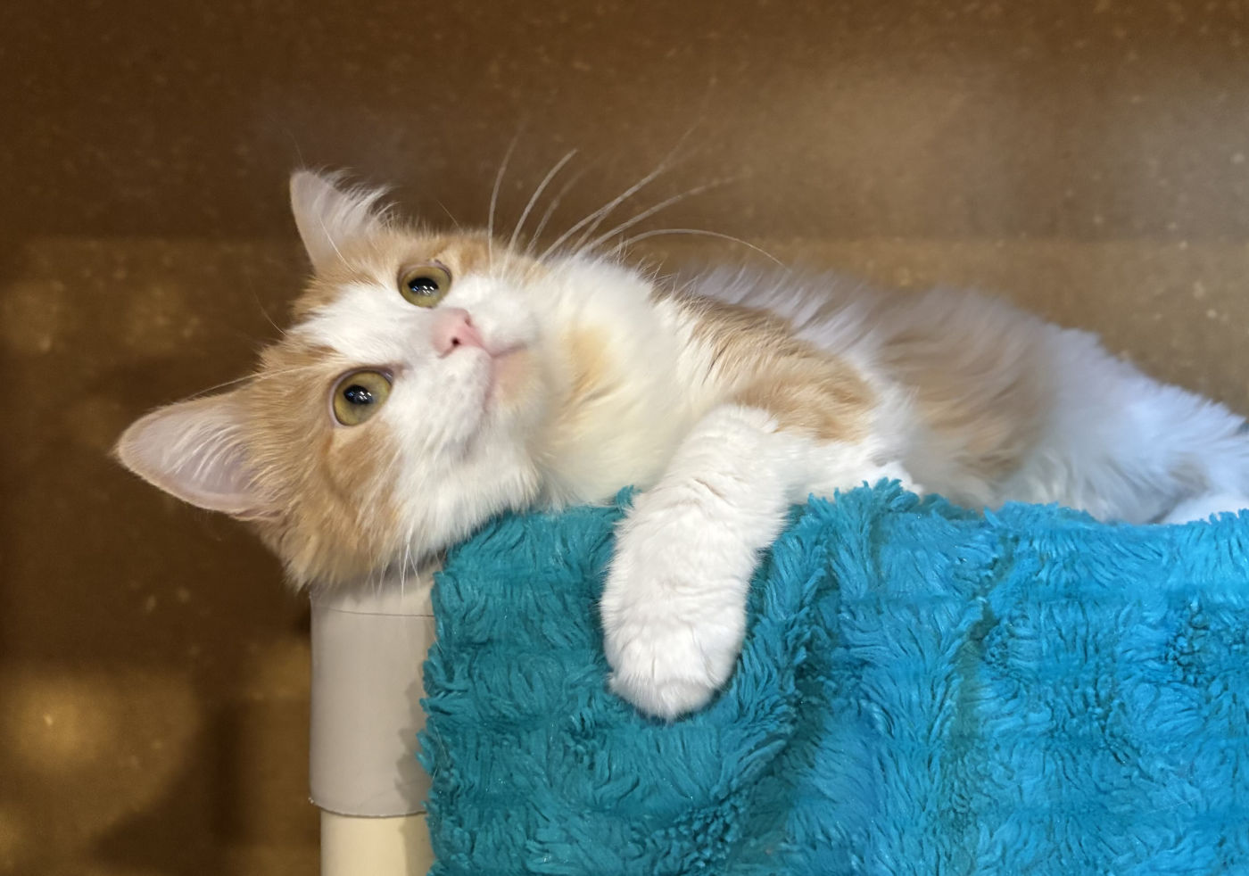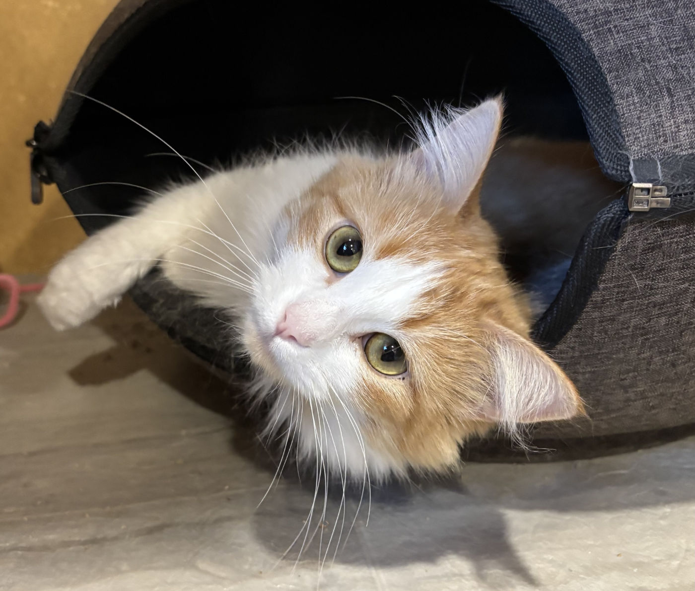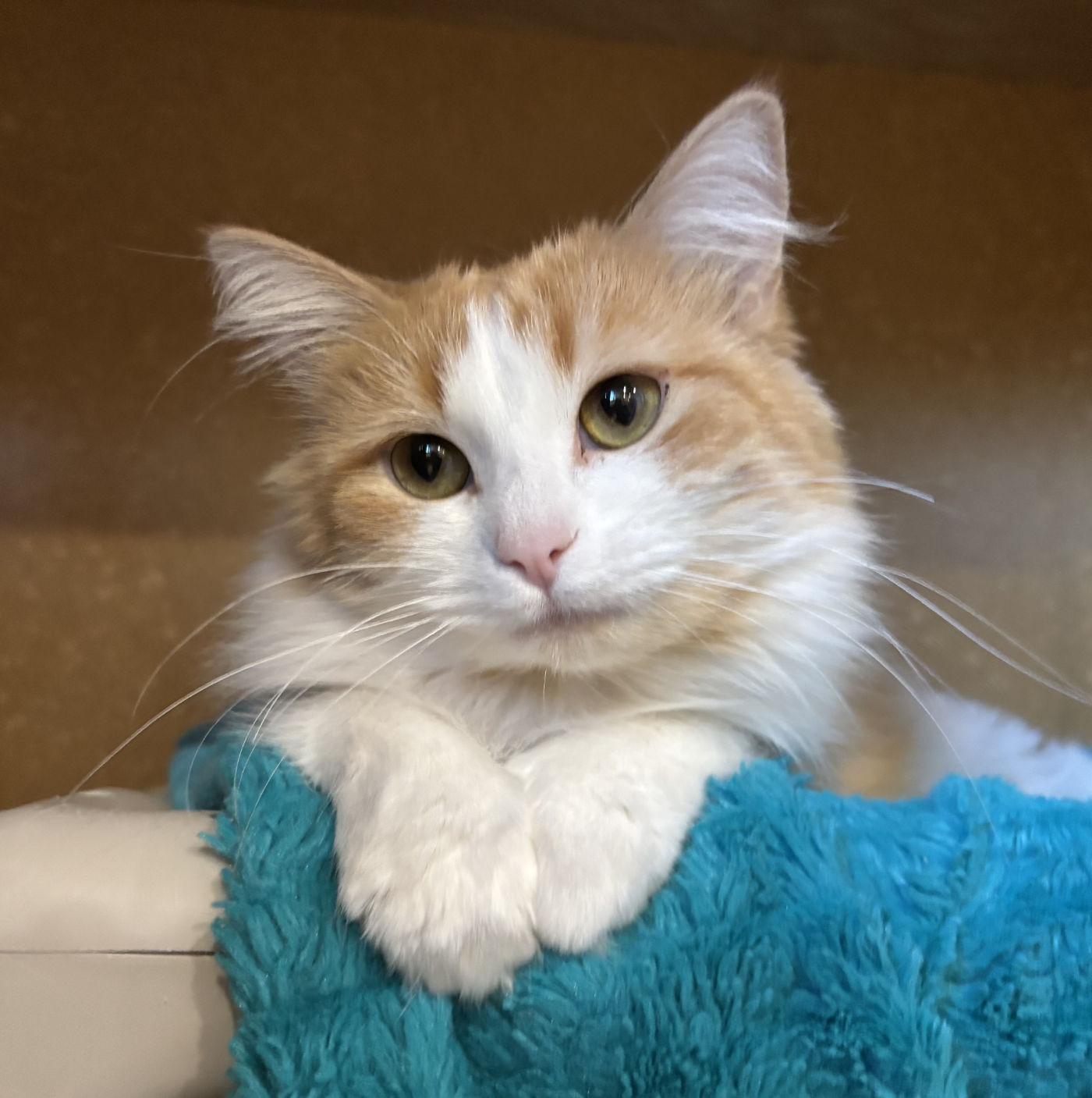 I’m about a year old and absolutely one-of-a-kind—a gorgeous long-haired orange girl with bright, sparkly eyes and a spirit that simply won’t quit. You can see I’m a flirty little Snuggle Bunny who loves to be loved on, rolling over and turning on the purrs the second you touch me.