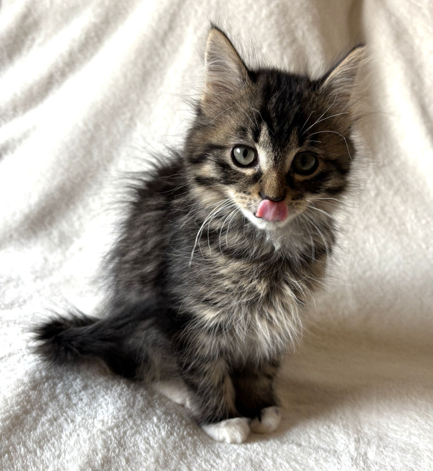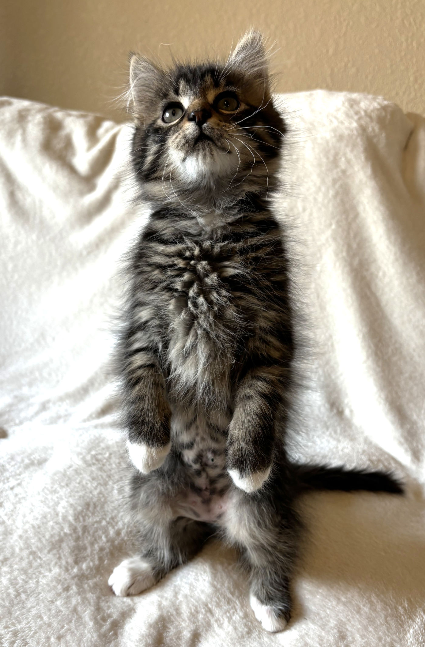 I was lovingly raised as a bottle baby, which means I’m deeply connected to my people. I adore being near you, sharing my happy purrs and playful energy. I’m full of life, affection, and personality — the kind of kitten who will make every day brighter just by being in it.