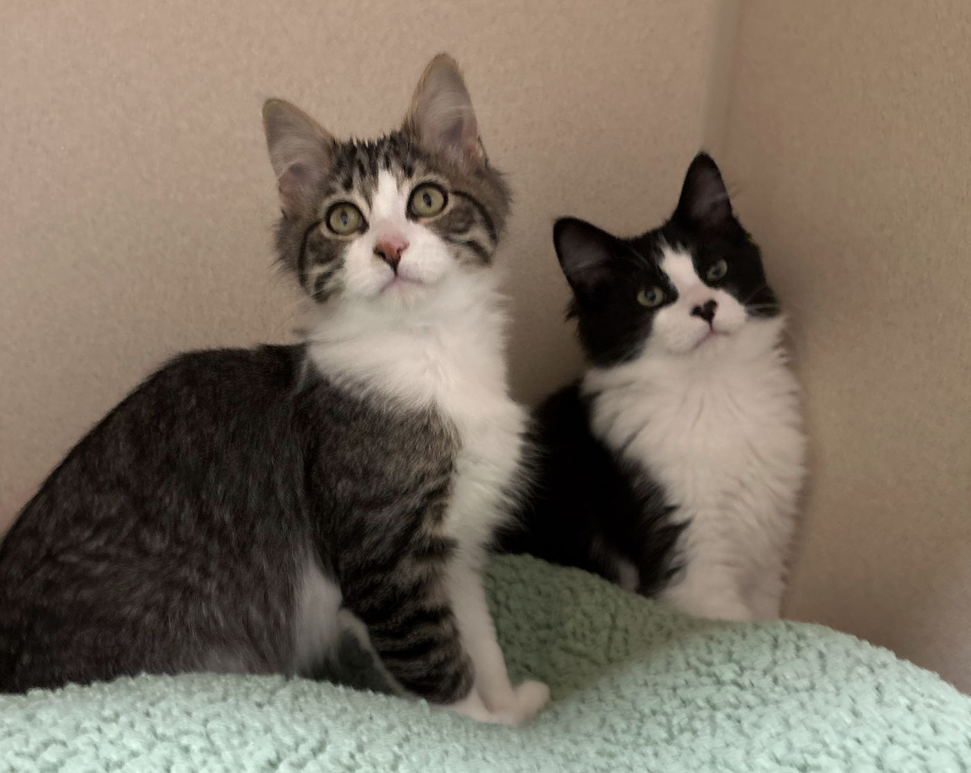 We are a gentle, refined pair with matching sage green eyes and the softest little pink noses, although Carsonโ€™s nose is especially charming if you ask us. We come when our names are called and always try to mind our manners, just as proper kittens should. Our friends say we are destined to be Kitty Admins, the thoughtful sort who like to observe first, then participate once we feel safe and settled.