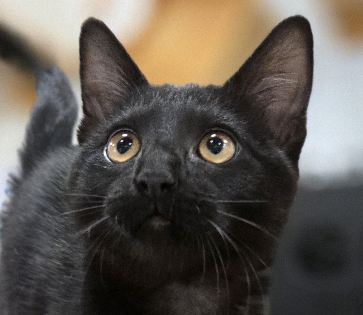 I absolutely love kisses and affection. If you’re looking for a snuggly panther-in-miniature, I’m your girl. Playtime is my favorite, especially when I get to dive under blankets and let my siblings pounce on me. I’ll play so hard that sometimes I start to pant, but nothing can slow me down! Oh, and if you bring out a Churu… let’s just say you’ll have my whole heart forever.