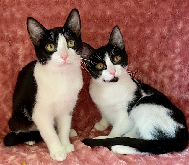 Meet Pearl and Lila, a bonded pair of 4 month old tuxedo sisters who are as sweet as they are playful. These girls are very close and will be adopted together.