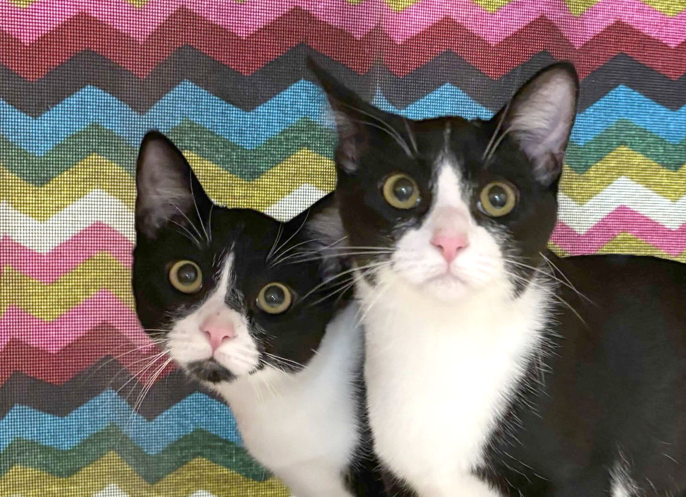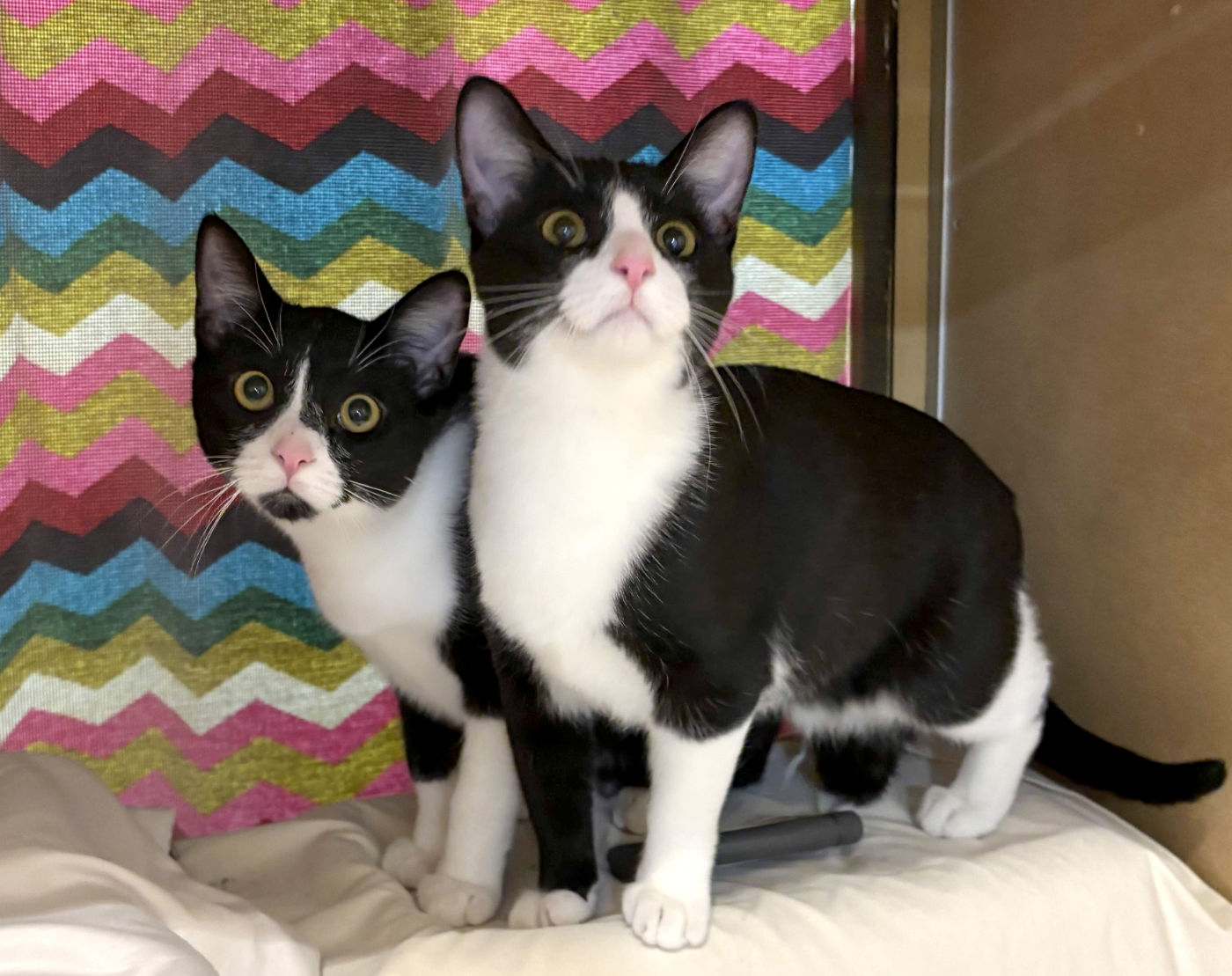 Both kittens do well with other cats and might do OK with a small, cat-savvy dog who isn’t going to accidentally step on Champion. They’ll do best in a home without small children.