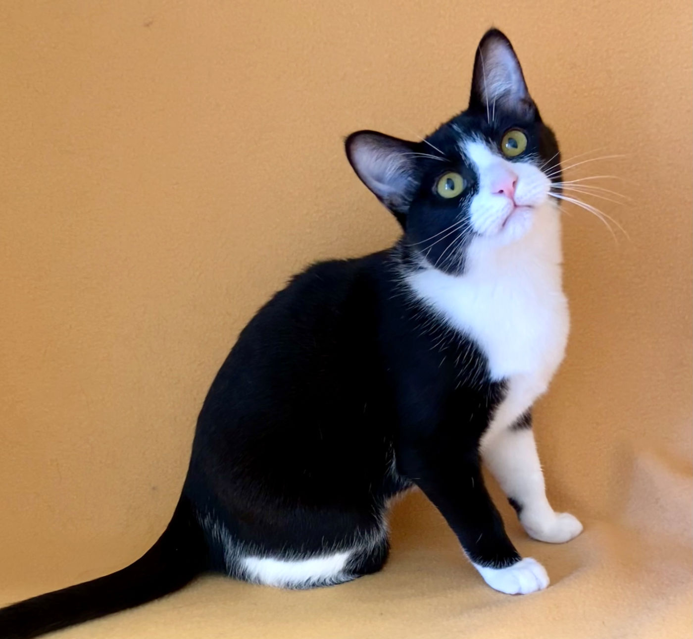 Both kittens are very affectionate, but appreciate getting to know you before they give their hearts away. We expect they will be perfect little Kitty Admins once they’re settled in their new homes, following their people around in hopes for some lap or sidecar time.