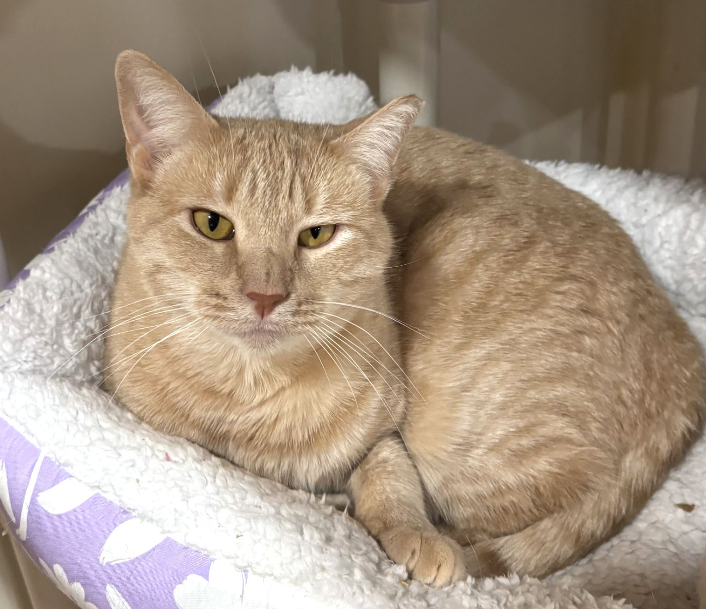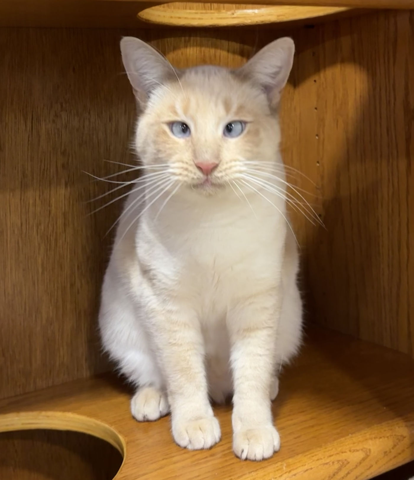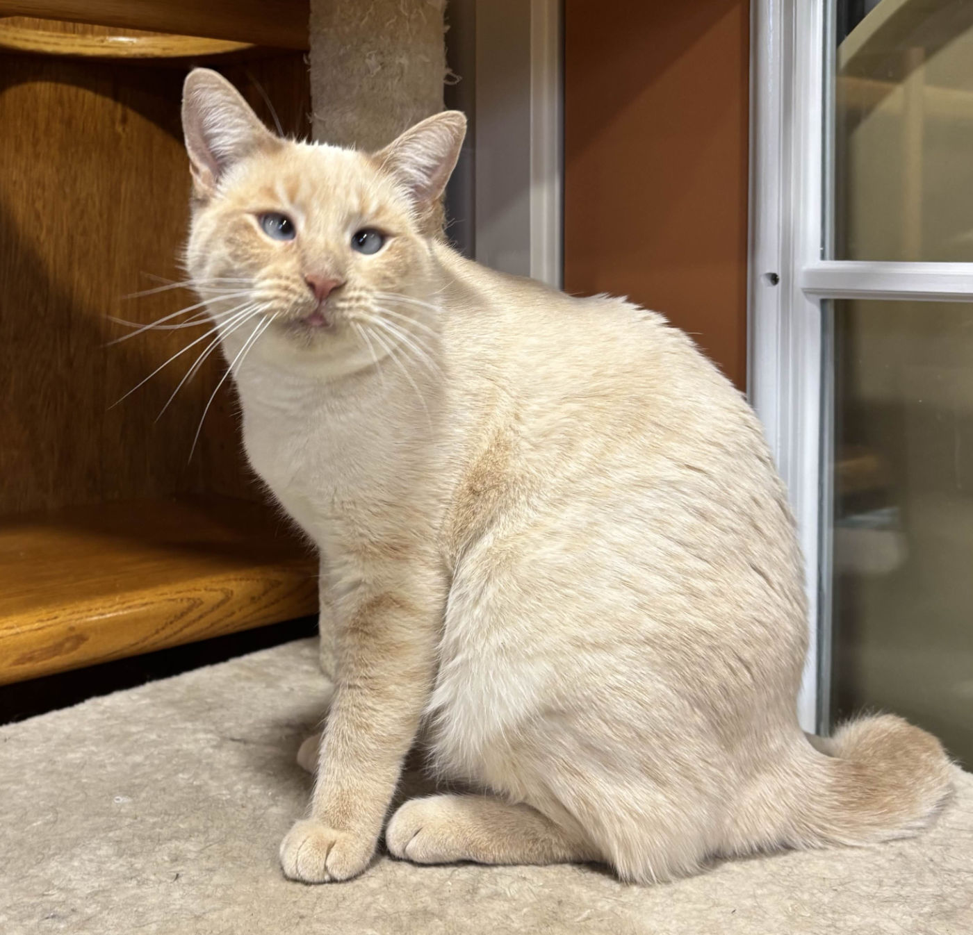 Meet Rosie and Emme, a bonded pair of sisters who are pure heart-stealers. Rosie is a beautiful and rare light orange tabby girl, and Emme is a striking flame point Siamese mix with gorgeous sapphire eyes—slightly cross-eyed, which only adds to her irresistible charm. She also has an adorable stubby tail like her cousins the American Bobtails. All the beauty, none of the fancy papers.