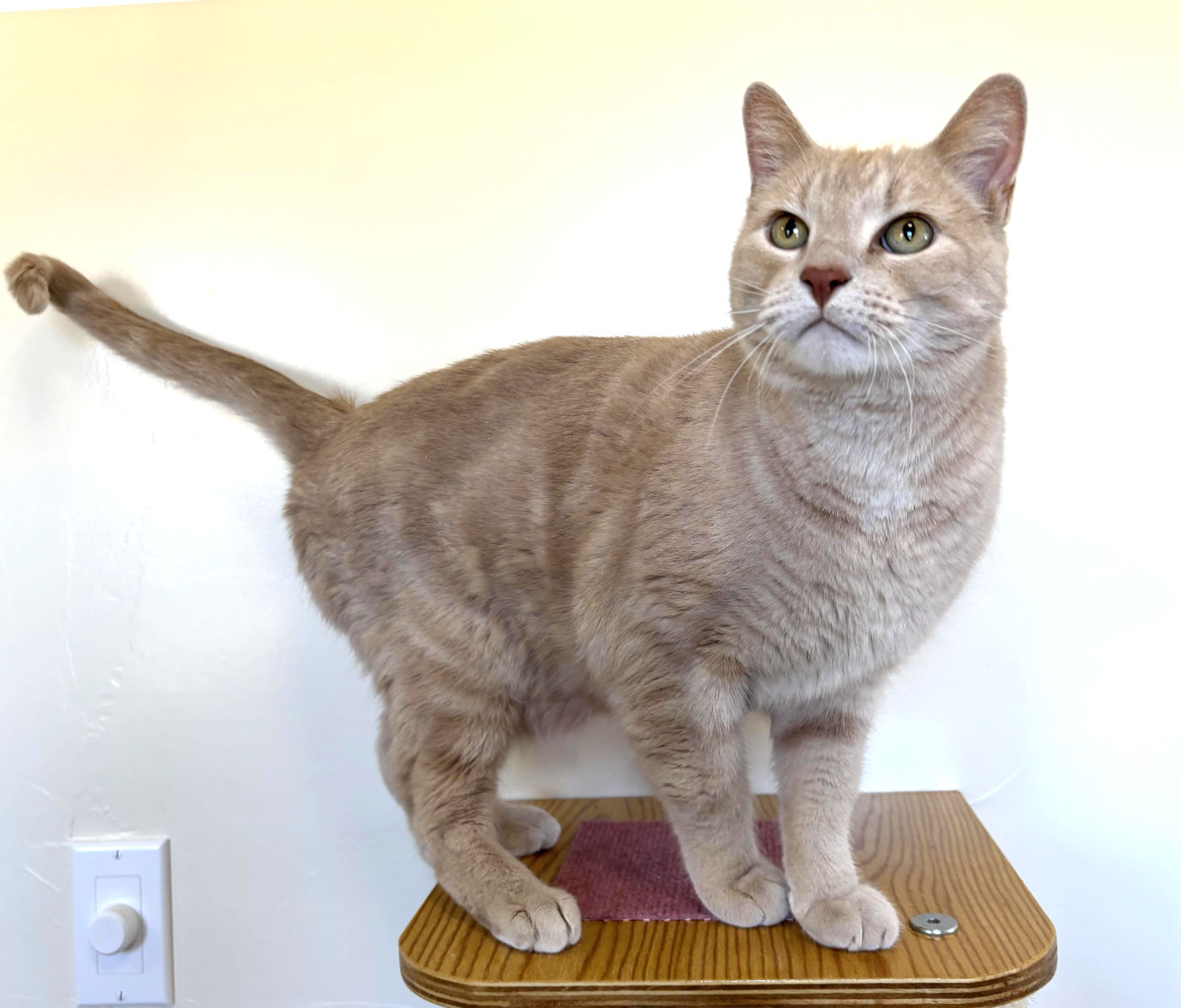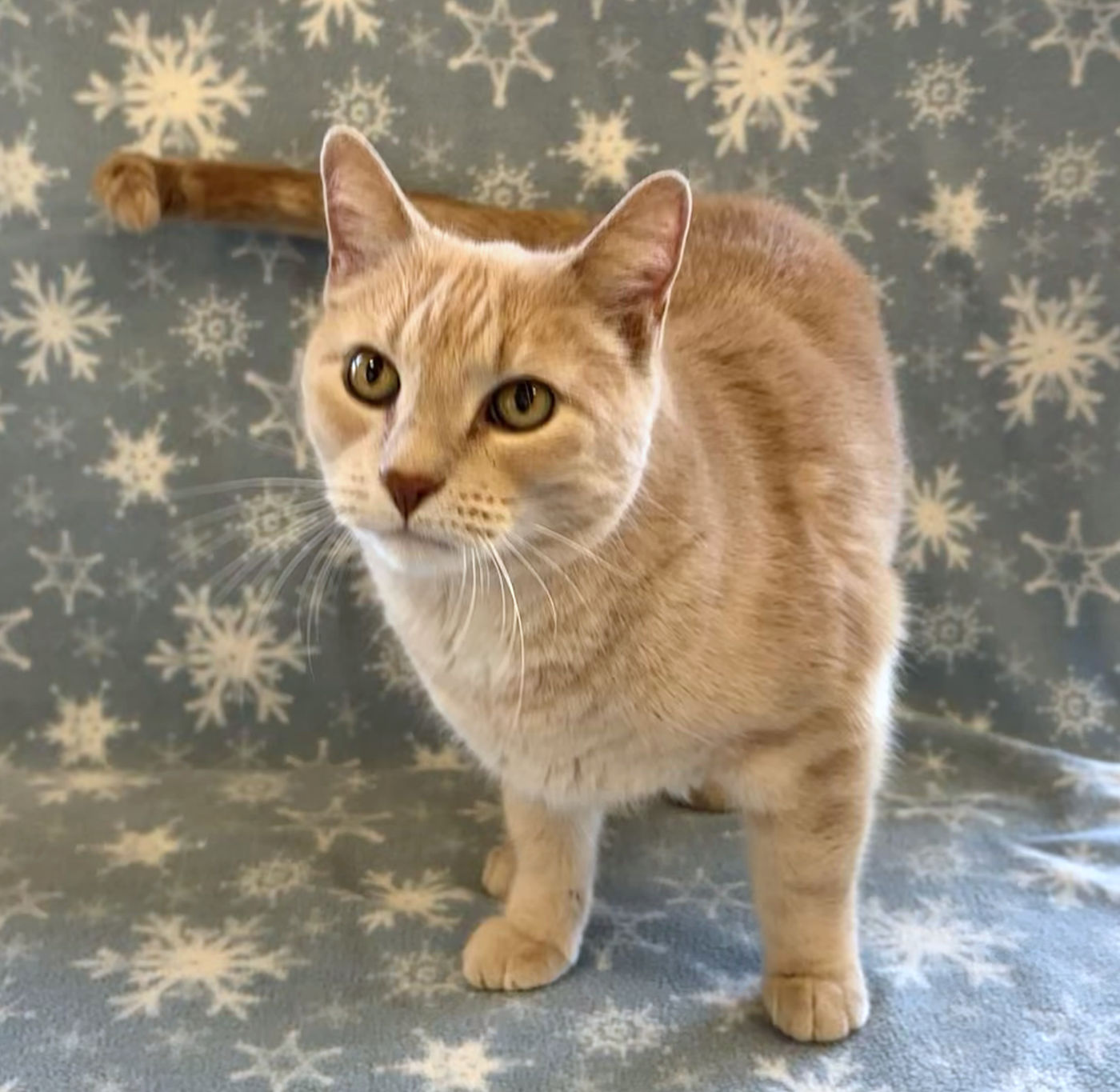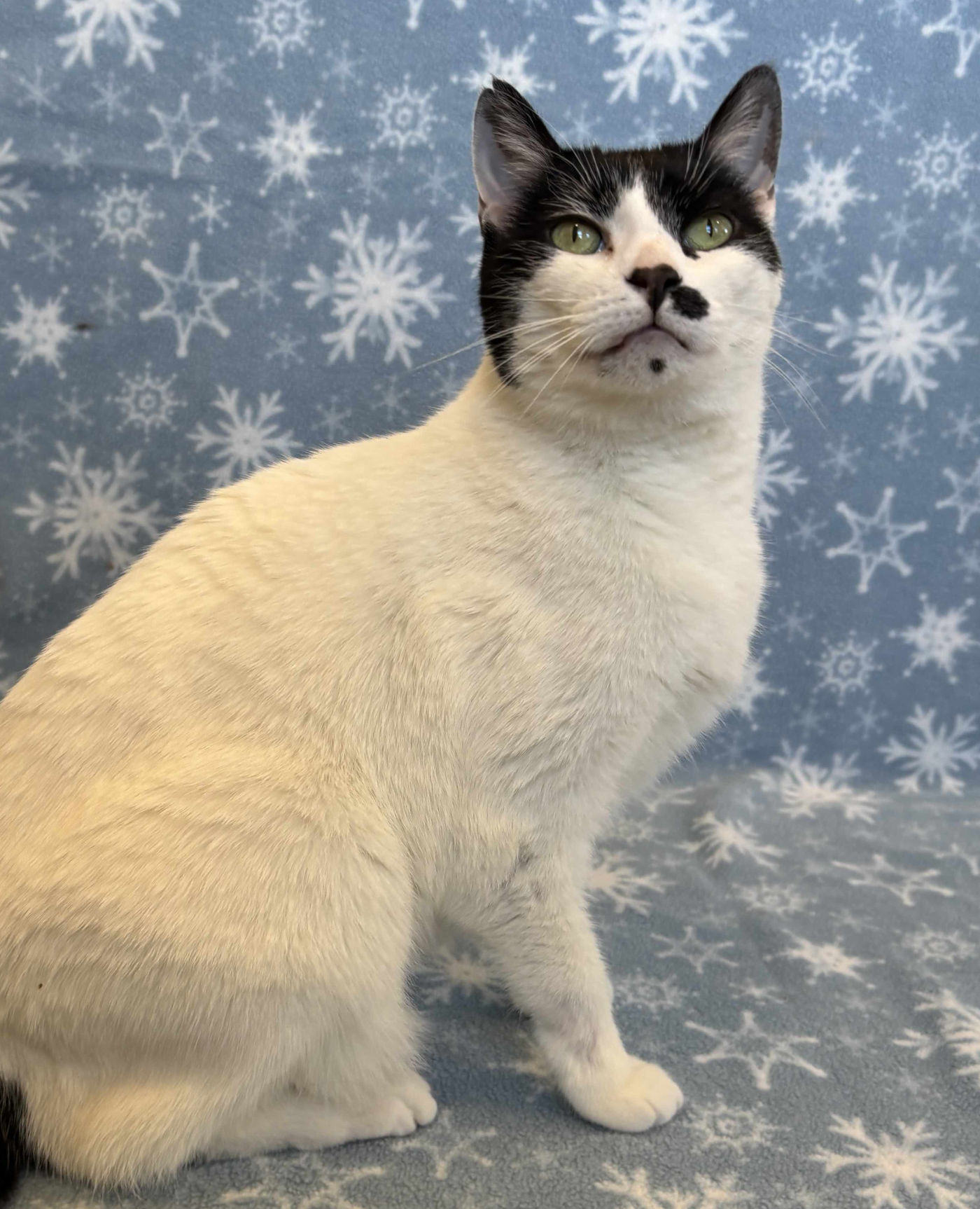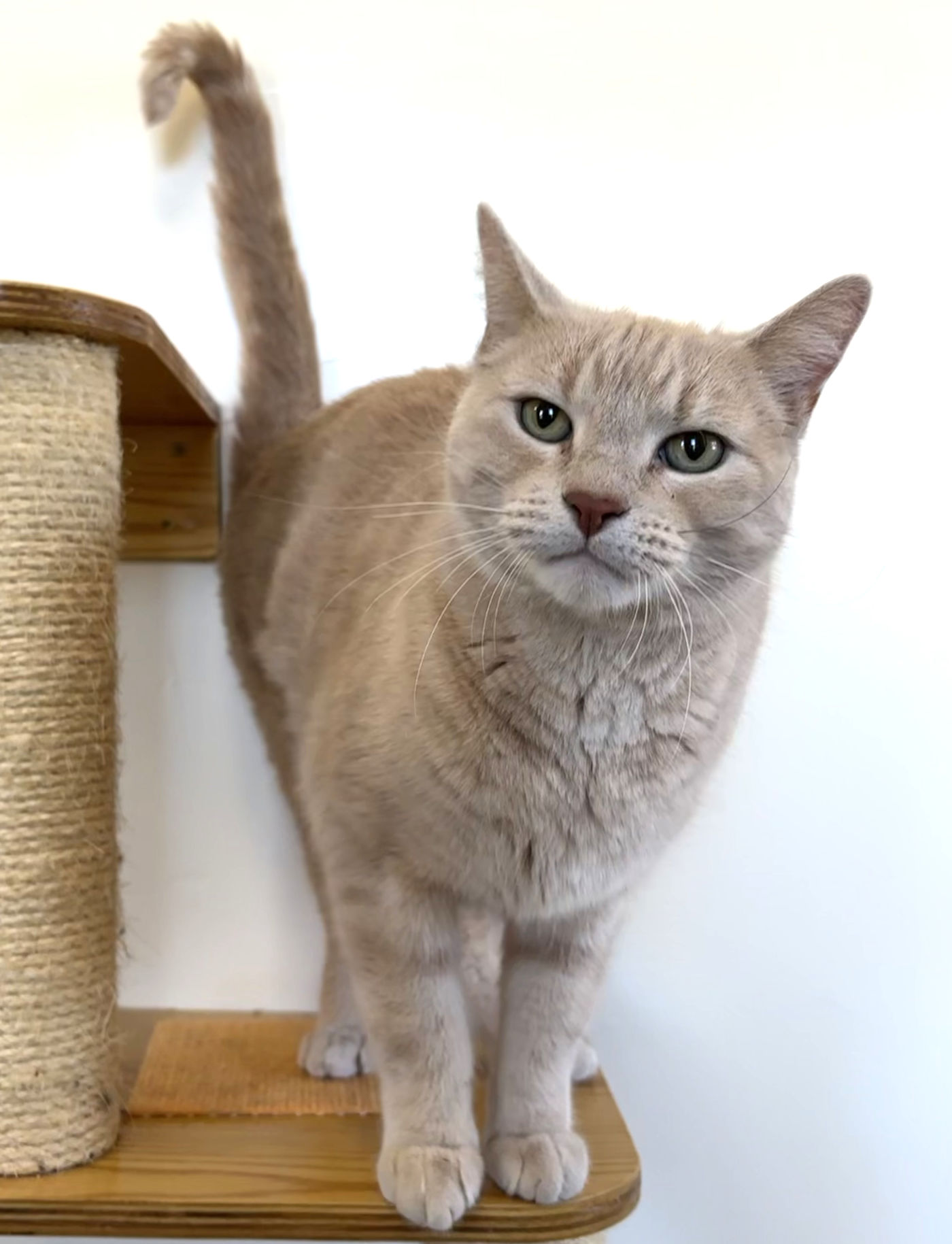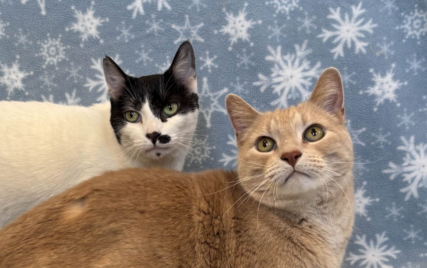Stunning white Sapphire with her black cap, tail and beauty marks became the big sister to handsome buff tabby Ollie 6 years ago. These green-eyed besties came to Happy Cats looking for a quieter family and more predictable home life.