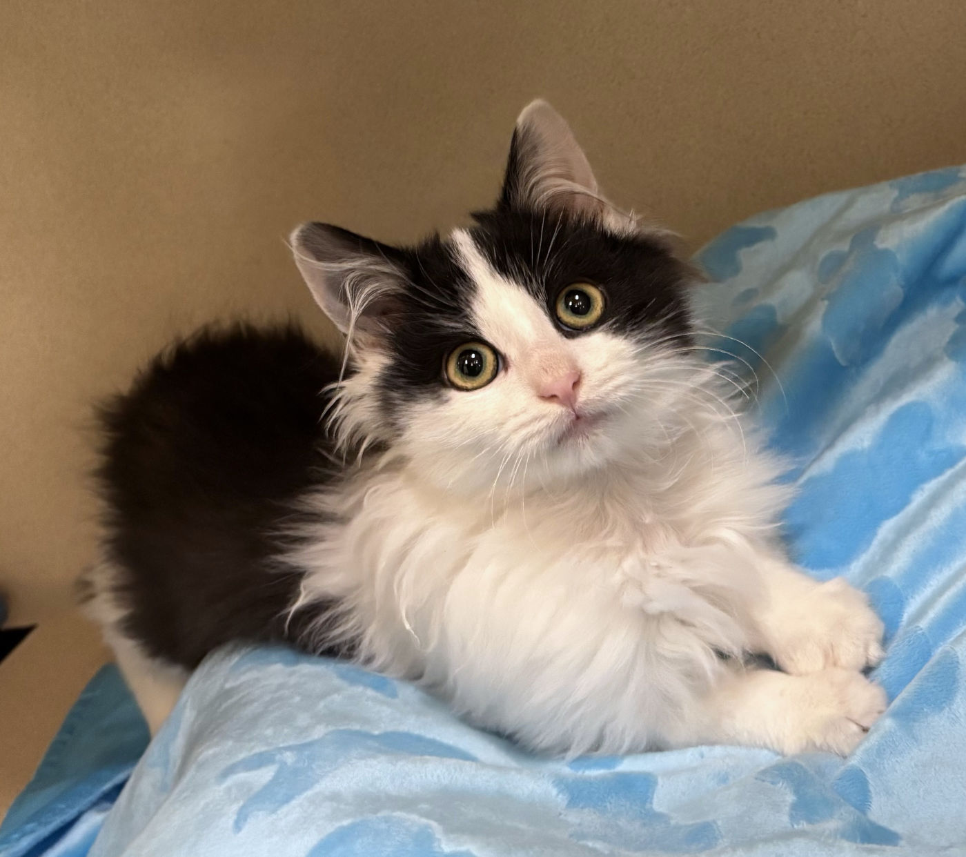 Hello, friend. My name is Shohei and I am a tiny longhair tuxedo boy with a rose petal pink nose and the sweetest little heart you could ever hope to meet. At just two months old, I am still learning about the big world, but everyone who meets me says I am absolutely precious.