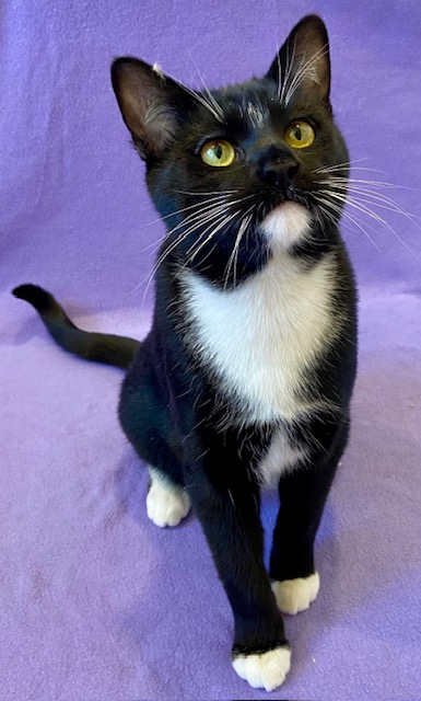At just 9 months old, these two are the perfect blend of sweet, silly, and affectionate once they feel safe. Tiki, the striking snowshoe mix, is your classic kitty admin. He likes to observe, supervise, and quietly keep things in order. Zuzu, the black and white tuxedo, is the funny Valentine of the duo. He brings the charm, the goofiness, and a playful sparkle that keeps life light.