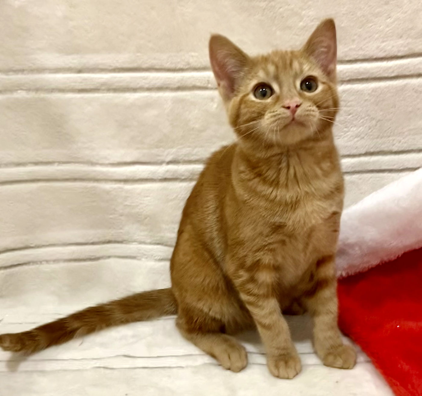 I am a dark orange classic tabby with lovely swirl patterns and a heart full of love. I am a little shadow who follows my people around, always hoping for attention, cuddles, and reassurance. I am a true snuggle bunny at heart and happiest when I am close to my humans. If you are looking for a kitten who will grow into a loving companion, I might be your perfect match.