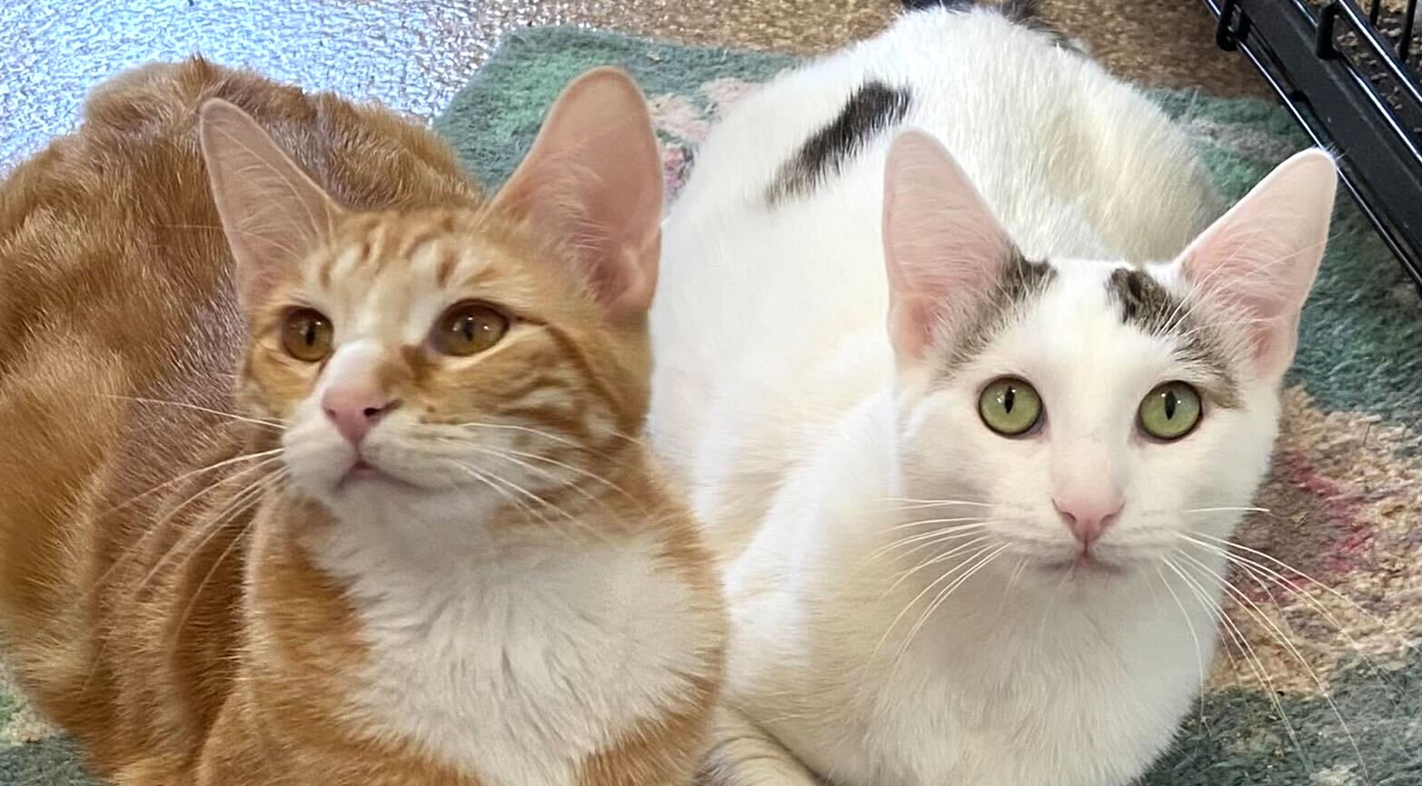 These buddies have each other’s backs, so will be happier if they’re adopted together. They can be adopted for $180 which includes their neuters, vaccinations, microchips, a food and litter starter kit each, and a free well-kitty checkup each to help you get started.
