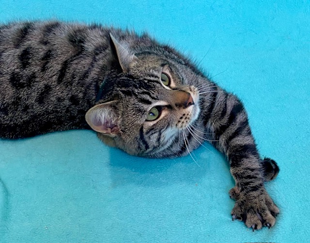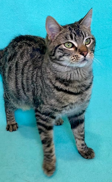 Hi, I am Wobbly. I am a 10-month-old handsome brown tabby boy with a sweetheart and a truly unique personality.
