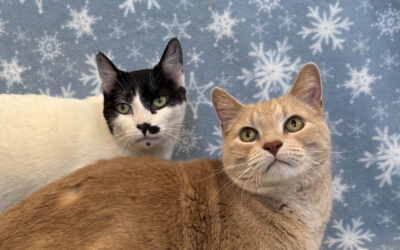 Stunning white Sapphire with her black cap, tail and beauty marks became the big sister to handsome buff tabby Ollie 6 years ago. These green-eyed besties came to Happy Cats […]